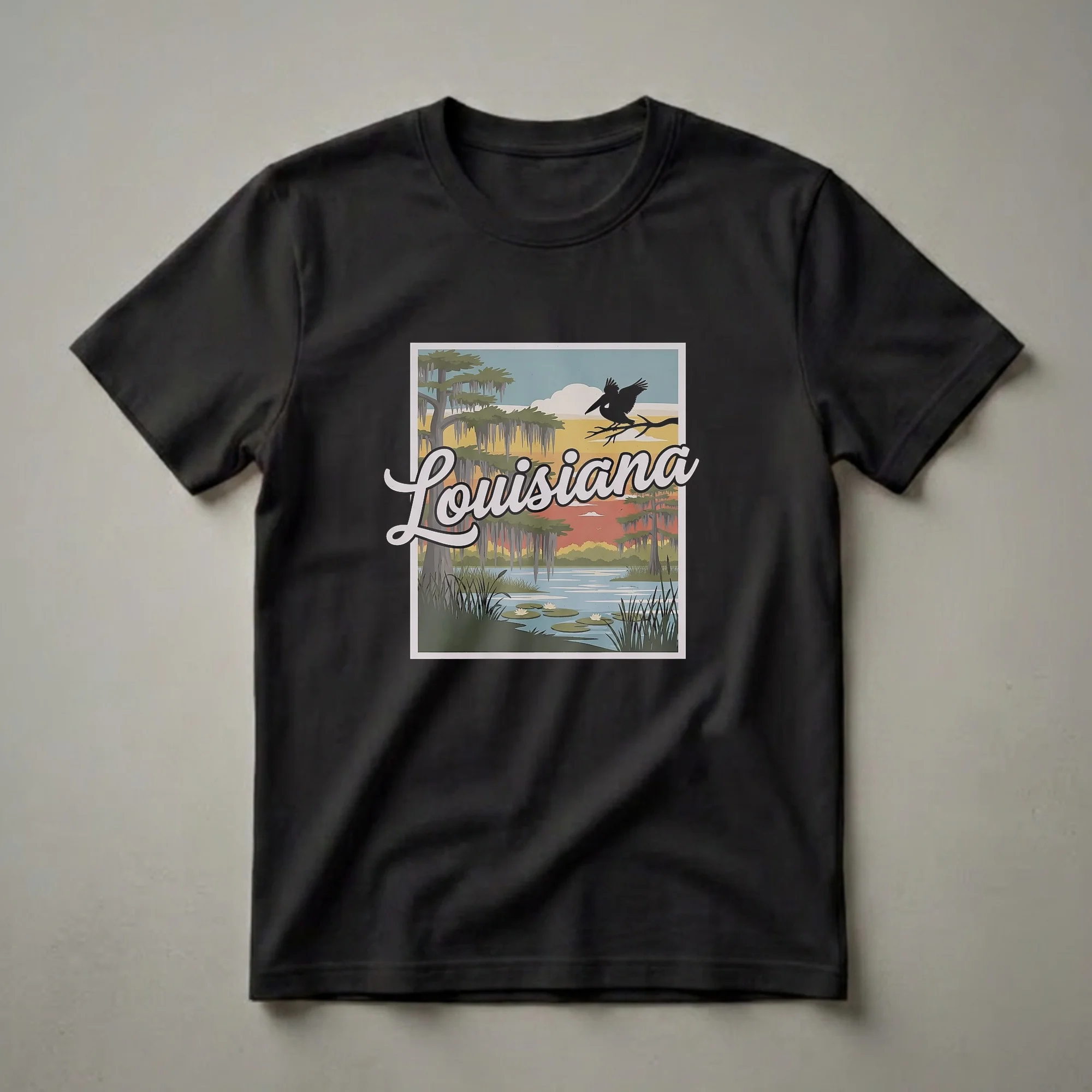 - Sport this Louisiana swamp scene t-shirt for state pride and bayou beauty.
