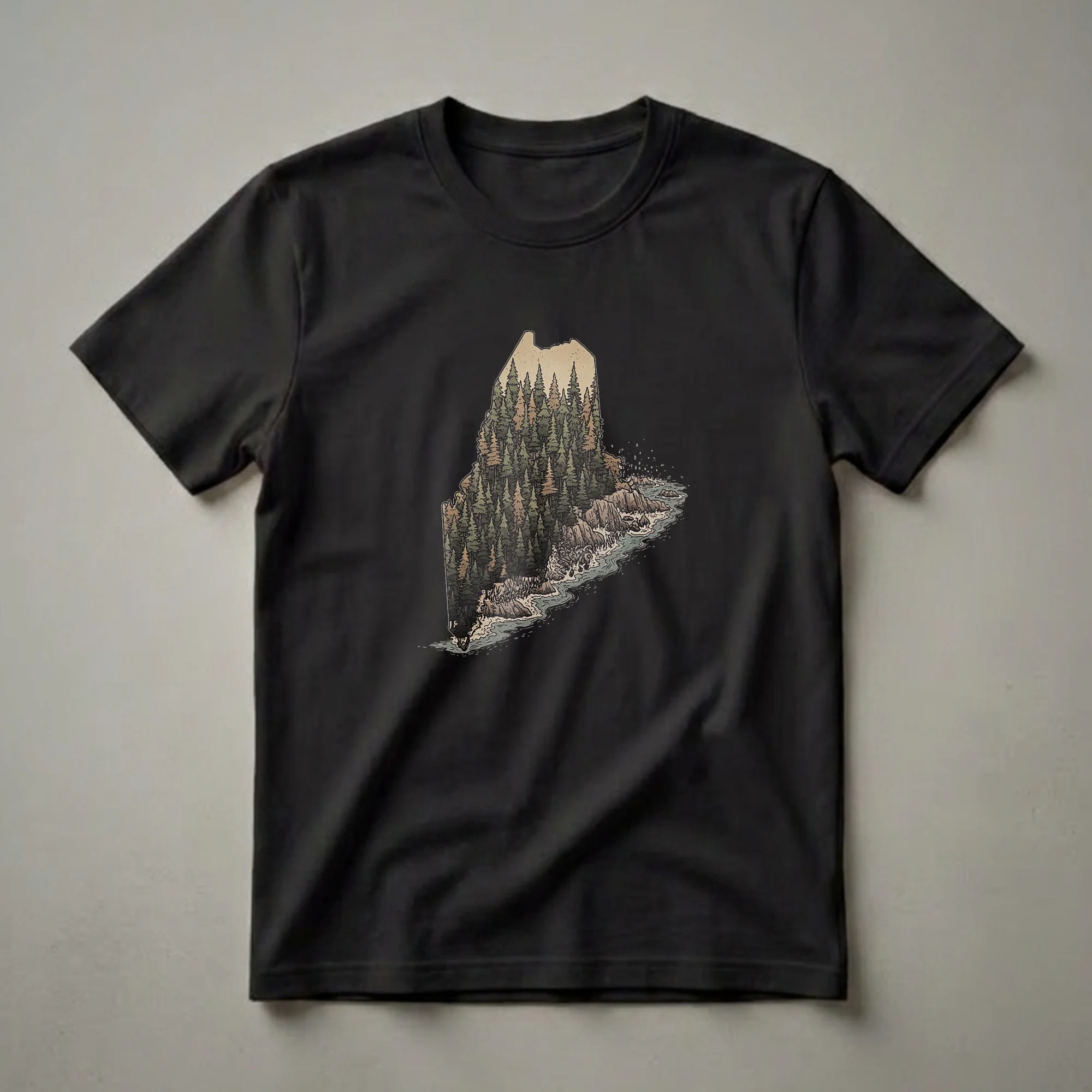 Hover to zoom · tap to expand Retro Maine Forest and Coastline Graphic T-Shirt for Nature Lovers
