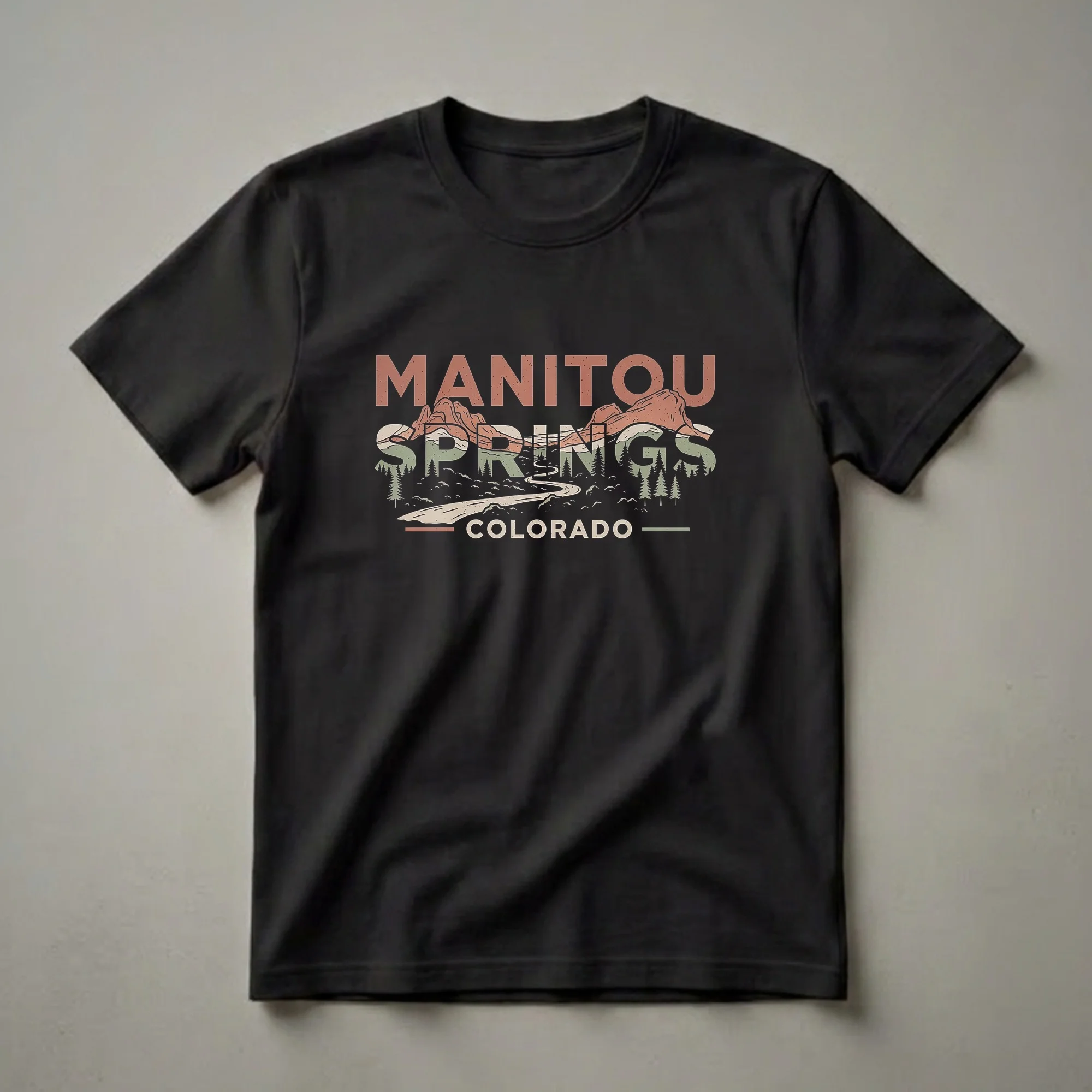 - Manitou Springs graphic tee celebrating Colorado's mountain spirit and history.