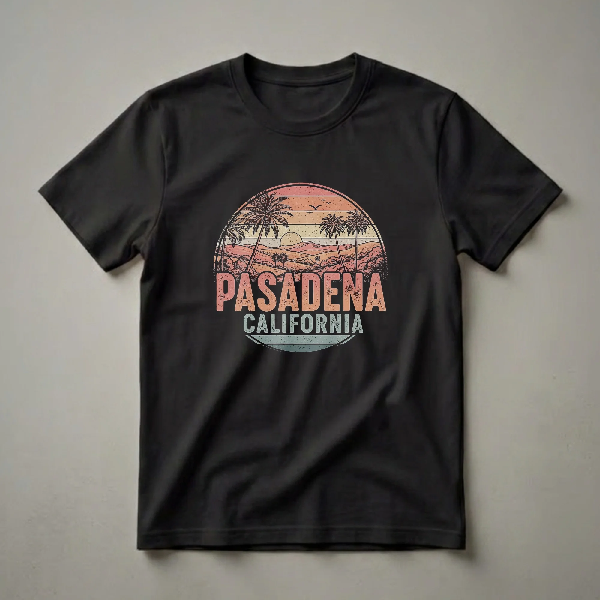 - Pasadena California sunset graphic tee for desert explorers and city dwellers.