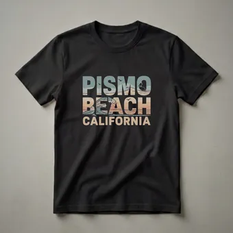 - Retro Pismo Beach California graphic tee for beach lovers.