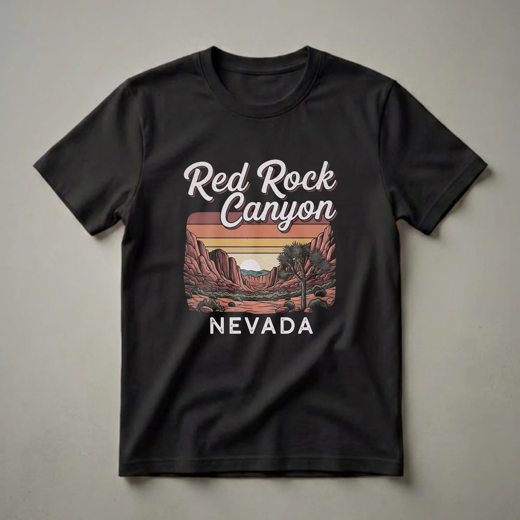 - Retro Red Rock Canyon graphic t-shirt for Nevada explorers.