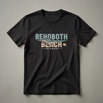 Beach lovers and Delaware enthusiasts will appreciate this vintage-style Rehoboth Beach graphic t-shirt celebrating coastal charm.This retro-inspired graphic tee captures the essence of the beach town with a striking design. The artwork features the words "REHOBOTH BEACH" in large, distressed lettering, overlaid with a stylized ocean wave crashing onto a sandy beach dotted with dune grass. Below, "DELAWARE" is presented in a smaller, clean font, framed by simple lines. A horseshoe crab, a common sight along the Atlantic coast, is depicted to the right, adding a touch of local marine life to the scene. This t-shirt is a thoughtful gift for anyone who cherishes memories of Rehoboth Beach, whether they are a lifelong resident or a frequent visitor. It's a go-to tee for casual outings, beach days, or simply reminiscing about the Delaware coast. Wear it to your next boardwalk stroll or family vacation to showcase your connection to this beloved seaside community. The design evokes a sense of nostalgia and appreciation for the natural beauty and relaxed atmosphere that Rehoboth Beach offers.