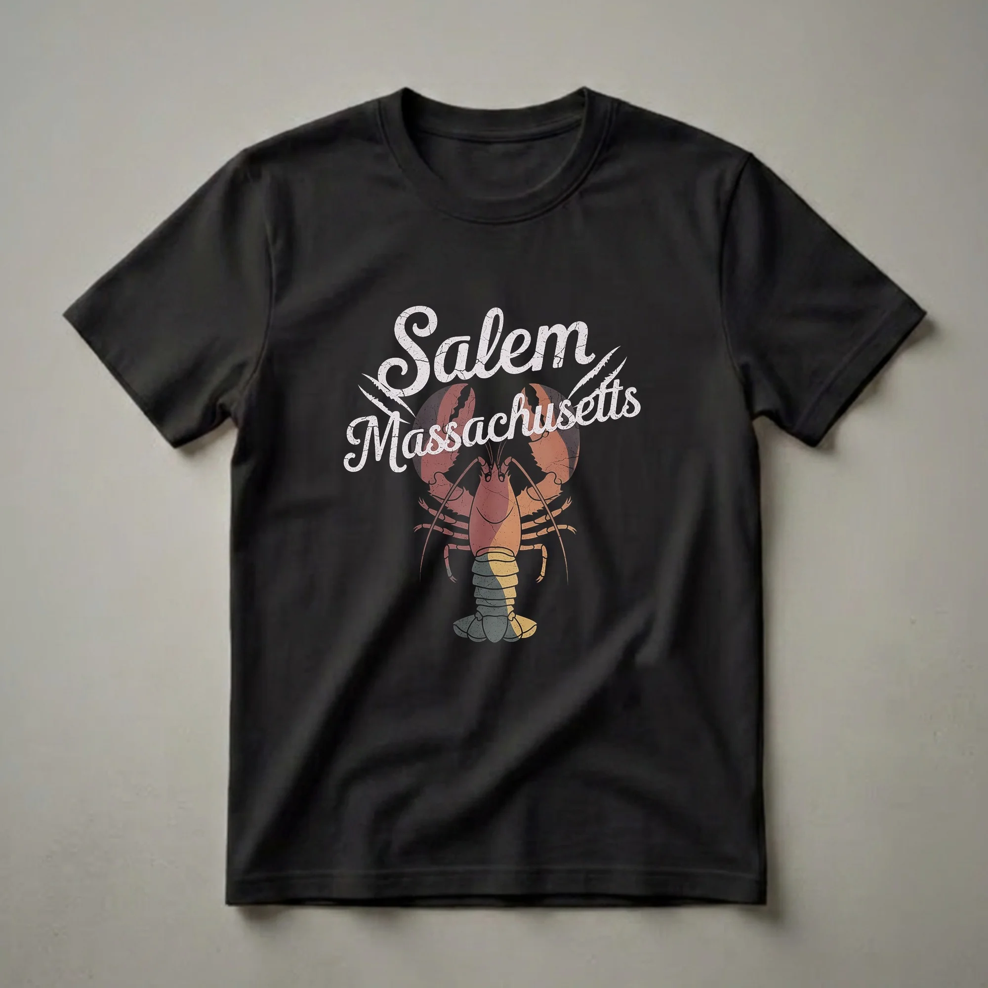 - Celebrate Salem, Massachusetts with this vintage-inspired lobster graphic t-shirt.