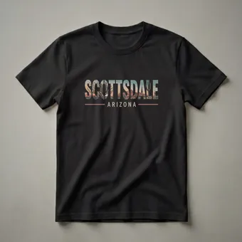 Scottsdale, Arizona, is a city renowned for its stunning desert vistas and vibrant Southwestern culture. This graphic tee captures that essence with a retro-inspired design that features the word "SCOTTSDALE" filled with a picturesque desert scene. The landscape within the letters showcases iconic saguaro cacti, arid brush, and distant mountains bathed in the warm hues of a sunset. Below, "ARIZONA" is presented in a clean, classic font, anchored by simple lines. This shirt is a thoughtful gift for anyone who cherishes the unique beauty of the Sonoran Desert, whether they are a longtime resident, a frequent visitor, or simply an admirer of the Southwest. It’s a staple in the collection for those who appreciate vintage travel aesthetics and the distinctive charm of Arizona. Wear this tee to a casual outing, a desert hike, or while exploring the unique shops and galleries Scottsdale is known for. It serves as a wearable reminder of the arid landscapes and the captivating allure of the American Southwest, making it a go-to tee for expressing regional pride.