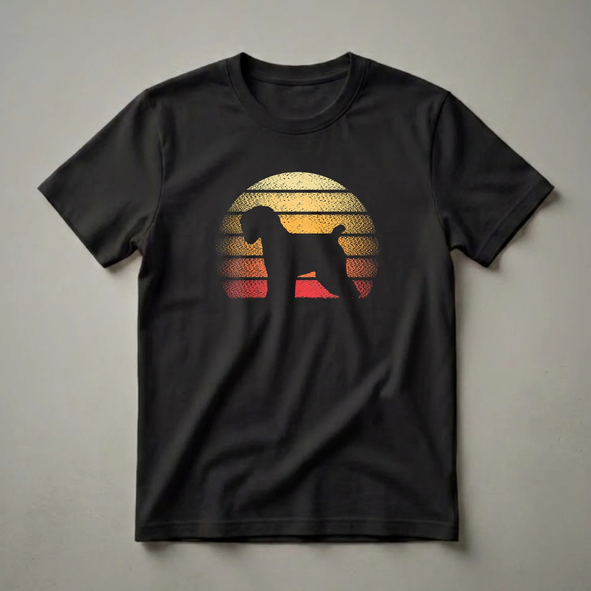 - Retro sunset graphic tee for Soft-Coated Wheaten Terrier lovers.