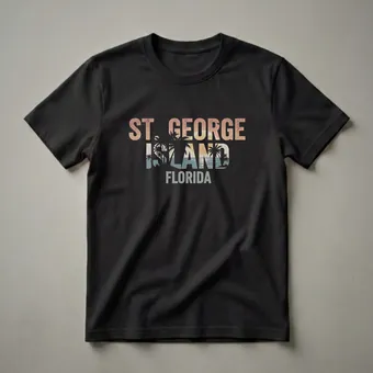 St. George Island, Florida, beckons with its pristine beaches and laid-back atmosphere, and this graphic tee captures that essence. The design features the words "ST. GEORGE ISLAND" in a distressed, retro font, with the "ISLAND" portion creatively filled with a silhouette of palm trees against a sunset and ocean horizon. Below, "FLORIDA" is emblazoned in a complementary, muted tone. This shirt is a fantastic way for anyone who has visited or dreams of visiting this Gulf Coast gem to express their connection. St. George Island is known for its natural beauty and is a popular destination for fishing, boating, and enjoying the sun. This t-shirt works well for residents, vacationers, or as a thoughtful gift for someone who cherishes memories of the "Forgotten Coast." Wear this tee to the beach, on a casual outing, or while reminiscing about your Florida adventures. It's a staple for any Florida travel enthusiast's wardrobe, offering a vintage vibe that never goes out of style. This shirt makes a thoughtful gift for friends and family who appreciate the unique charm of the Florida Panhandle.