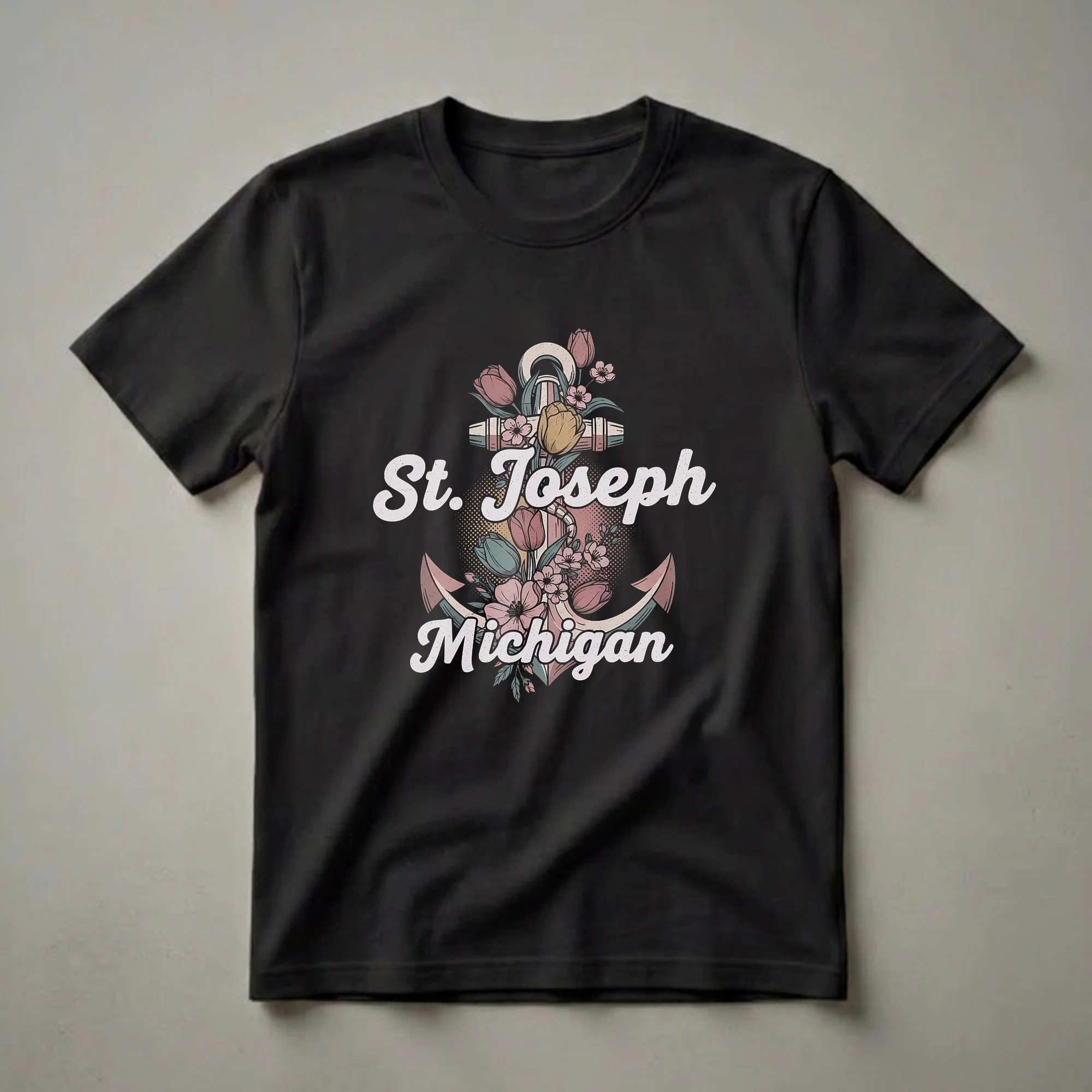 - Celebrate St. Joseph, Michigan's nautical charm with this anchor and floral art tee.