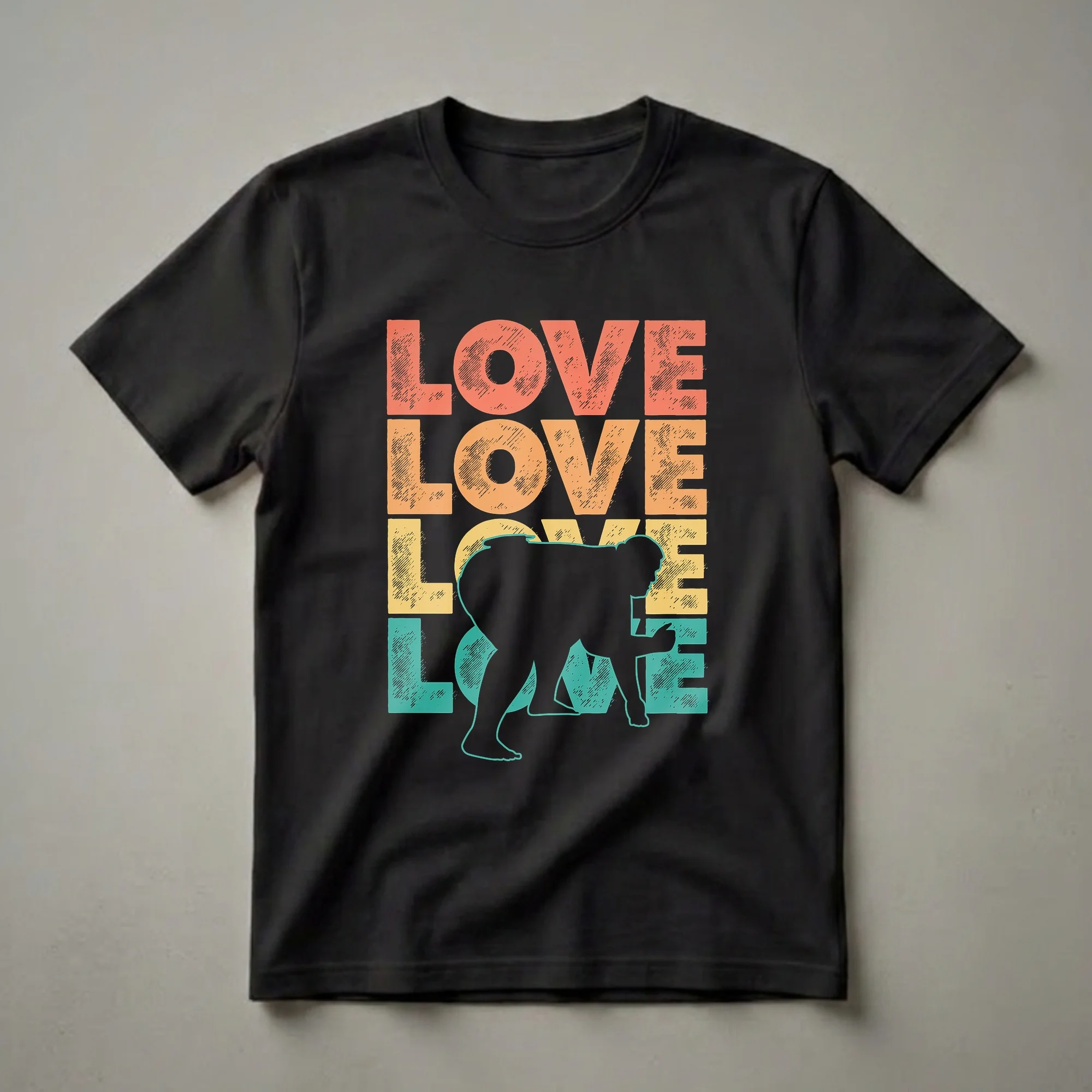 Sumo wrestling fans will appreciate this eye-catching graphic tee featuring the word 'LOVE' stacked in retro hues of coral, orange, yellow, and teal. The central element is a bold black silhouette of a sumo wrestler in a classic stance, ready for the bout. Sumo, a competitive full-contact wrestling sport originating in Japan, is known for its rich traditions and powerful athletes. This shirt celebrates that passion, making it a unique piece for anyone who follows the sport. It's a staple in the collection for those who admire the strength and discipline of sumo. This t-shirt makes a thoughtful gift for the sumo enthusiast in your life, whether they are a seasoned fan or new to the sport. Wear this shirt to a sporting event, a casual gathering, or simply while relaxing at home to showcase your dedication to sumo wrestling.