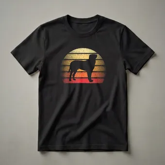 Bullmastiff owners know the breed's imposing stature and gentle nature, making this retro sunset graphic tee a fitting tribute. The design features a bold black silhouette of a Bullmastiff standing proudly against a distressed, horizontal striped sunset in shades of yellow, orange, and red. This iconic visual evokes a sense of nostalgia and appreciation for these powerful yet affectionate dogs. The Bullmastiff, developed in the 19th century by crossing the Bulldog with the Mastiff, was originally bred to guard estates and deter poachers. Their loyalty and protective instincts are legendary. This shirt is a thoughtful gift for any Bullmastiff mom or dad who cherishes their canine companion. It's a staple in the collection for anyone who appreciates vintage aesthetics and canine companionship. Wear this eye-catching tee to dog parks, casual meetups, or simply while relaxing at home with your furry friend, celebrating the unique bond you share. This apparel is a true conversation starter.