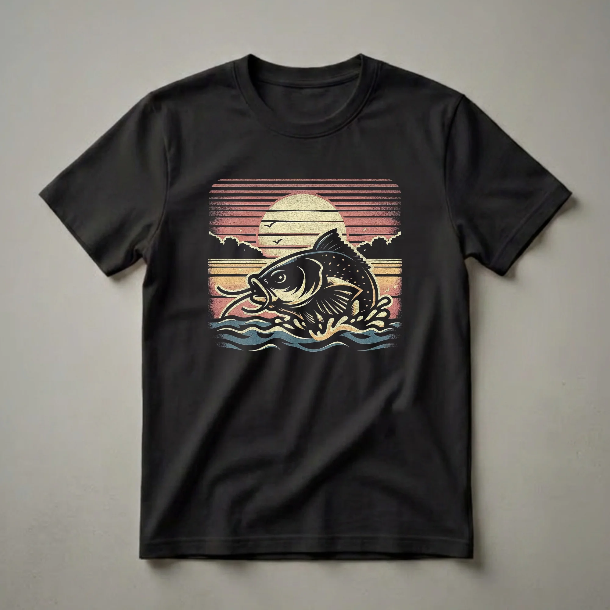Hover to zoom · tap to expand Retro Sunset Catfish Leaping Graphic T-Shirt for Anglers