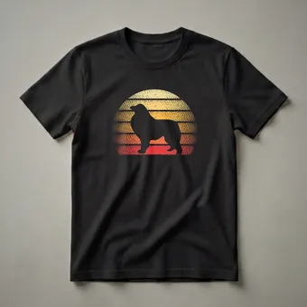 Great Pyrenees owners who appreciate vintage aesthetics will reach for this striking graphic tee. The design features a bold black silhouette of a Great Pyrenees dog standing proudly against a vibrant retro sunset. This iconic breed, known for its majestic white coat and gentle temperament, originates from the Pyrenees Mountains between France and Spain. The sunset is rendered in horizontal stripes of warm yellow, orange, and red, with a distressed texture that enhances the vintage feel. Below the dog's paws, a subtle hint of grass grounds the image. This t-shirt is a thoughtful gift for any Great Pyrenees mom or dad, celebrating their bond with their large, loyal canine friend. It's a go-to tee for casual outings, dog park visits, or simply relaxing at home with your beloved pet. Wear this shirt to express your passion for this magnificent breed and its charming, old-school vibe. This apparel is a true conversation starter.