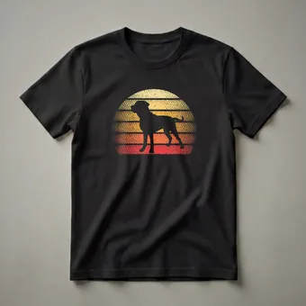 Greater Swiss Mountain Dog owners who appreciate vintage aesthetics will reach for this striking graphic tee. The design features a bold black silhouette of a Greater Swiss Mountain Dog standing proudly against a retro sunset. This iconic breed, originating from the Swiss Alps, was historically used as a draft and drover dog, known for its strength and gentle temperament. The sunset is depicted with horizontal stripes in warm hues of yellow, orange, and red, all rendered with a distressed texture that enhances the vintage feel. This shirt works well for anyone who cherishes their large, loyal companion. It makes a thoughtful gift for a dog mom or dog dad who wants to display their affection for their furry family member. Wear this tee to casual outings, dog park visits, or while relaxing at home with your beloved Swissy. It's a staple in the collection for any devoted owner. This tee truly captures the spirit of the breed.