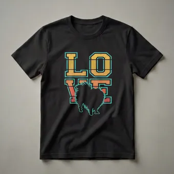 Pomeranian owners know the joy these fluffy, spirited dogs bring into their lives. This retro-inspired graphic tee captures that affection with a striking design. The word 'LOVE' is presented in a vintage sunset color palette, featuring shades of orange, yellow, and teal, with a distressed texture for an authentic retro feel. The 'O' in 'LOVE' is replaced by a bold black silhouette of a Pomeranian, showcasing its characteristic fluffy mane and alert stance. Pomeranians, originating from the Pomerania region of Central Europe, are known for their outgoing personalities and fox-like faces. This t-shirt is a fantastic way for any Pomeranian mom or dad to express their devotion. It makes a thoughtful gift for birthdays, holidays, or just because for the dog lover in your life. Wear this comfortable tee to your next dog park visit or casual outing and let everyone know about your favorite furry friend. This shirt is a staple for any proud Pomeranian parent's wardrobe.