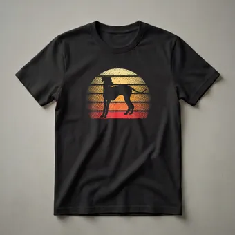 Italian Greyhound owners who appreciate a vintage aesthetic will reach for this striking graphic tee. The design features a black silhouette of an Italian Greyhound standing against a retro sunset. The sunset is depicted with horizontal stripes in shades of yellow, orange, and red, all with a distressed, textured finish that evokes a nostalgic feel. Italian Greyhounds, known for their slender build and elegant appearance, are often described as affectionate and playful companions. This shirt is a thoughtful gift for any Italian Greyhound mom or dad, or for someone who simply admires the breed's unique charm. It's a great conversation starter at dog parks or casual outings, allowing you to wear your passion for these graceful sighthounds. This t-shirt is a staple in the collection for any dog enthusiast looking for a stylish and unique way to celebrate their favorite breed. Wear it to your next dog-walking meetup or a casual weekend brunch.