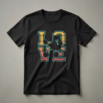 Dog lovers, express your affection for your poodle with this retro sunset graphic tee, featuring a unique silhouette design that spells out your devotion. The design features the word 'LOVE' in a bold, retro font, with a stylized poodle silhouette cleverly integrated into the letter 'O'. The sunset-inspired color palette, featuring warm oranges, yellows, and teal accents, evokes a nostalgic, vintage vibe. Poodles, known for their distinctive curly coats and playful yet elegant demeanor, are a beloved breed. Originating in Germany as water retrievers, they are now cherished worldwide for their trainability and affectionate nature. This shirt is a thoughtful gift for any woman who considers her poodle a cherished member of the family. It's a fantastic way to express your passion for your furry friend, whether you're heading to a dog park, running errands, or enjoying a casual day out. Wear this tee to celebrate the special bond you share with your poodle and let your love for this elegant breed shine.