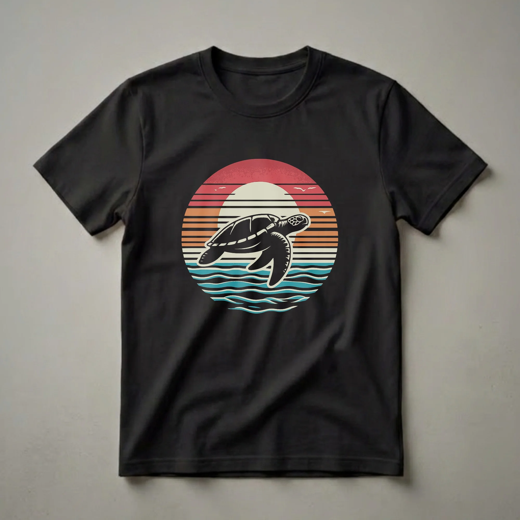 Hover to zoom · tap to expand Retro Sunset Sea Turtle Silhouette Graphic T-Shirt for Ocean Lovers