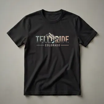 Telluride, Colorado, a former mining town nestled in the San Juan Mountains, offers breathtaking scenery that inspires this retro graphic t-shirt. The design prominently features the word 'TELLURIDE' with a majestic mountain range and a winding river integrated into the lettering, evoking the rugged beauty of the region. Below, 'COLORADO' grounds the design, celebrating the state's iconic landscapes. This tee is a go-to for hikers, skiers, and anyone who feels a connection to the San Juan Mountains or has fond memories of visiting this picturesque mountain town. It's a thoughtful gift for friends and family who appreciate the unique charm and outdoor adventures Telluride provides. Wear this shirt on your next mountain excursion or as a reminder of your favorite Colorado getaway. This graphic tee is a comfortable way to express your passion for the Colorado mountain west.