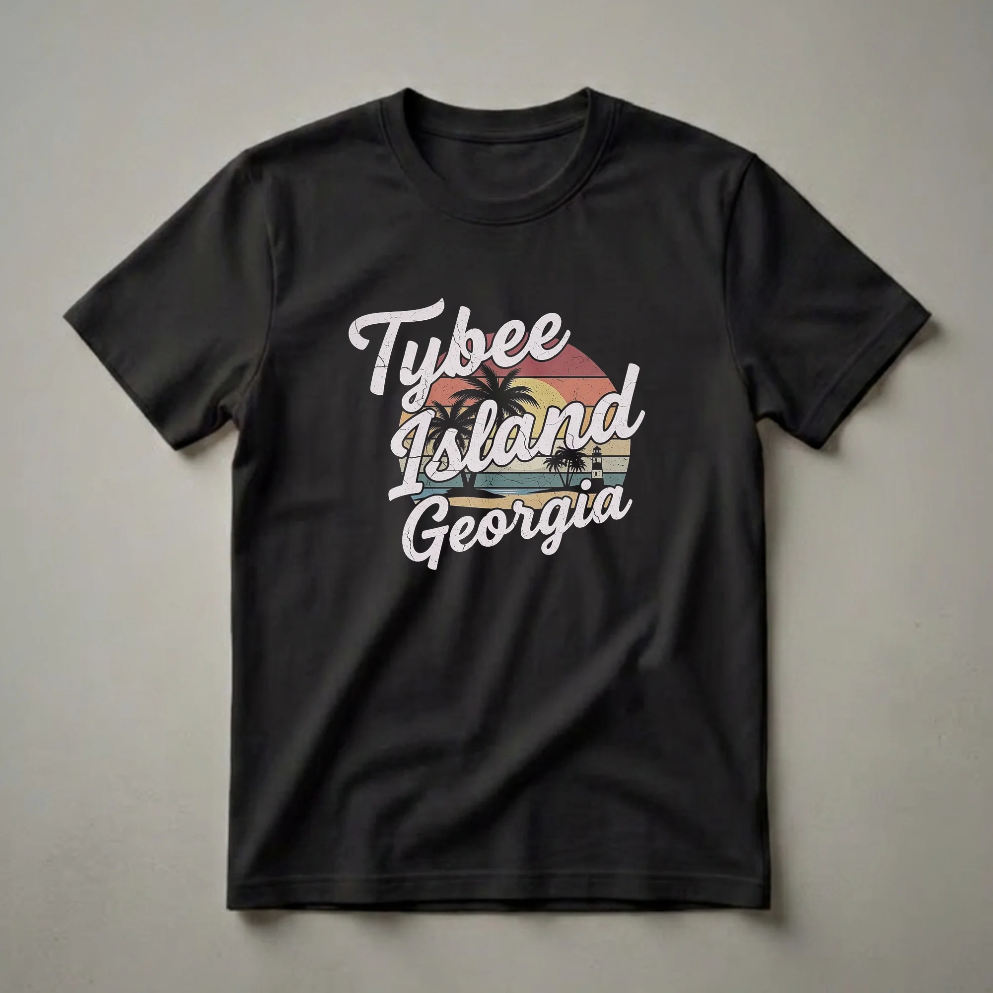 - Showcase your love for Tybee Island, Georgia with this retro sunset graphic tee, perfect for beach lovers and Georgia residents.