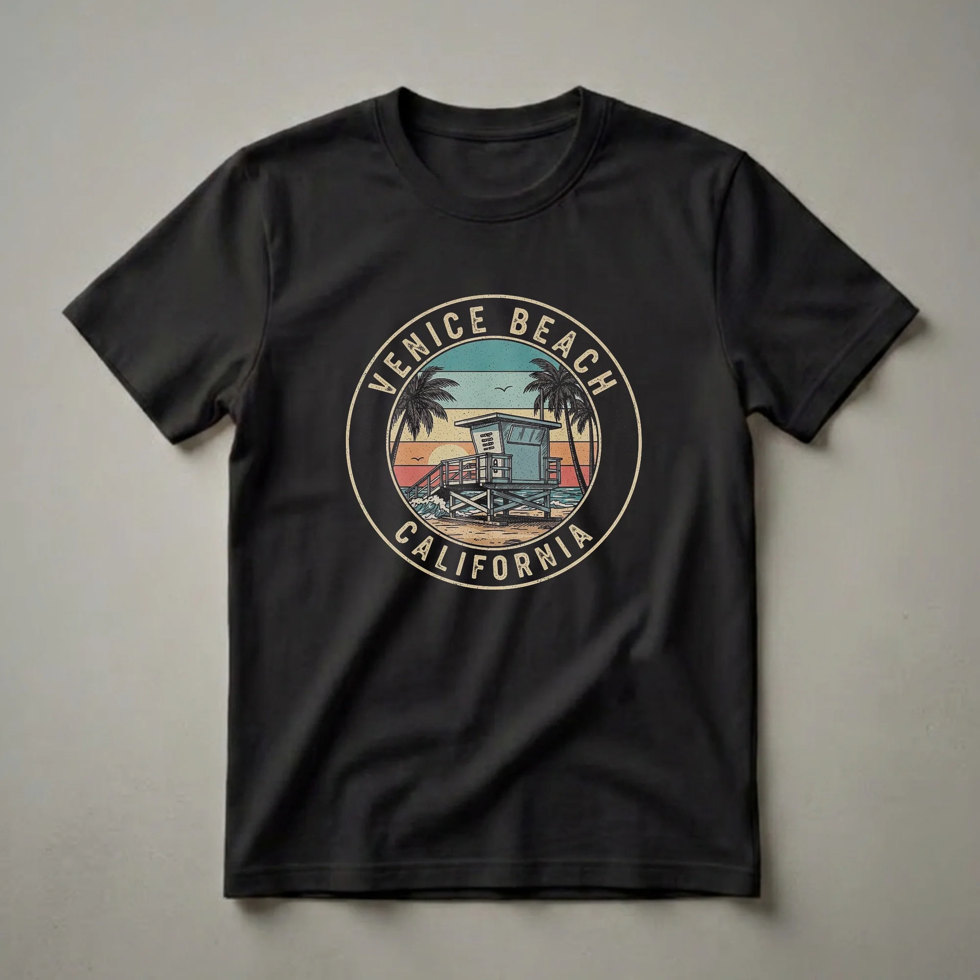 - Retro Venice Beach graphic t-shirt for California beach lovers.