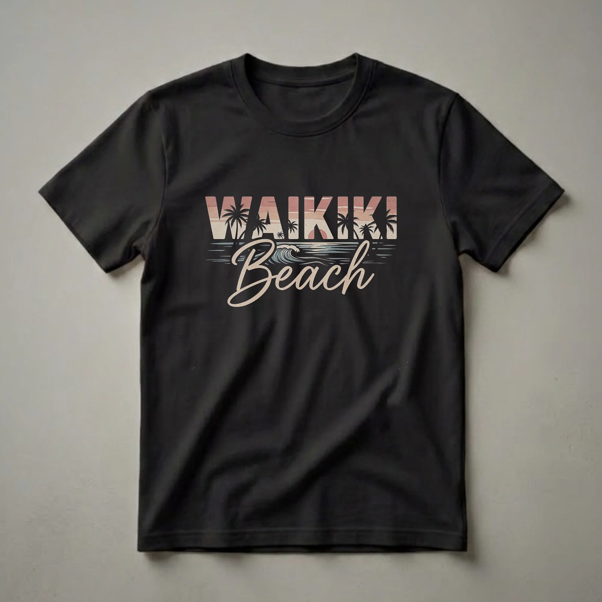 - Retro Waikiki Beach graphic tee for Hawaii lovers, showcasing Oahu's iconic destination.