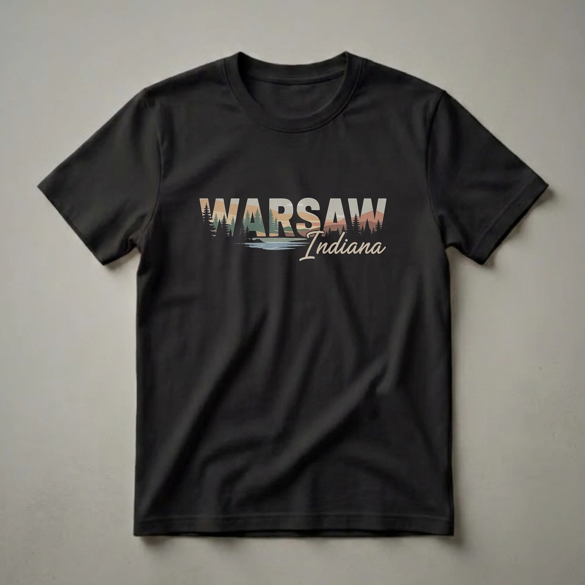 - Showcase Warsaw, Indiana's charm with this retro landscape graphic tee.