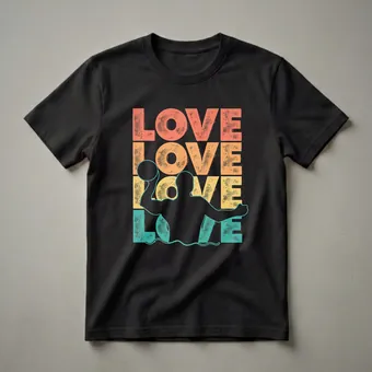 - Features a stacked 'LOVE' word design with a water polo player silhouette.