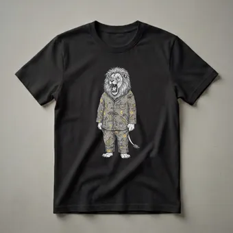 Lions, the majestic kings of the savanna, are often depicted with fierce roars and regal manes. However, this striking graphic tee presents a different side of the big cat, showcasing a lion dressed in a whimsical pajama set. The pajamas themselves are adorned with a playful safari theme, featuring illustrations of giraffes, zebras, and smiling moons scattered across a grey background. This unique design captures the essence of humor and the unexpected, blending the wild nature of a lion with the comfort of sleepwear. It's a conversation starter, a thoughtful choice for anyone who loves animals and enjoys a good laugh. The detailed linework and the contrast between the lion's powerful expression and its cozy attire make this shirt a standout piece. This tee works well for casual outings, game nights, or simply lounging at home. It makes a thoughtful gift for the animal lover in your life who appreciates a touch of the absurd and a dash of safari charm. Imagine gifting this to a friend who adores lions or has a passion for wildlife, but also enjoys a good chuckle. This shirt is a staple in any collection that celebrates unique and humorous animal art, offering a playful twist on the king of the jungle.