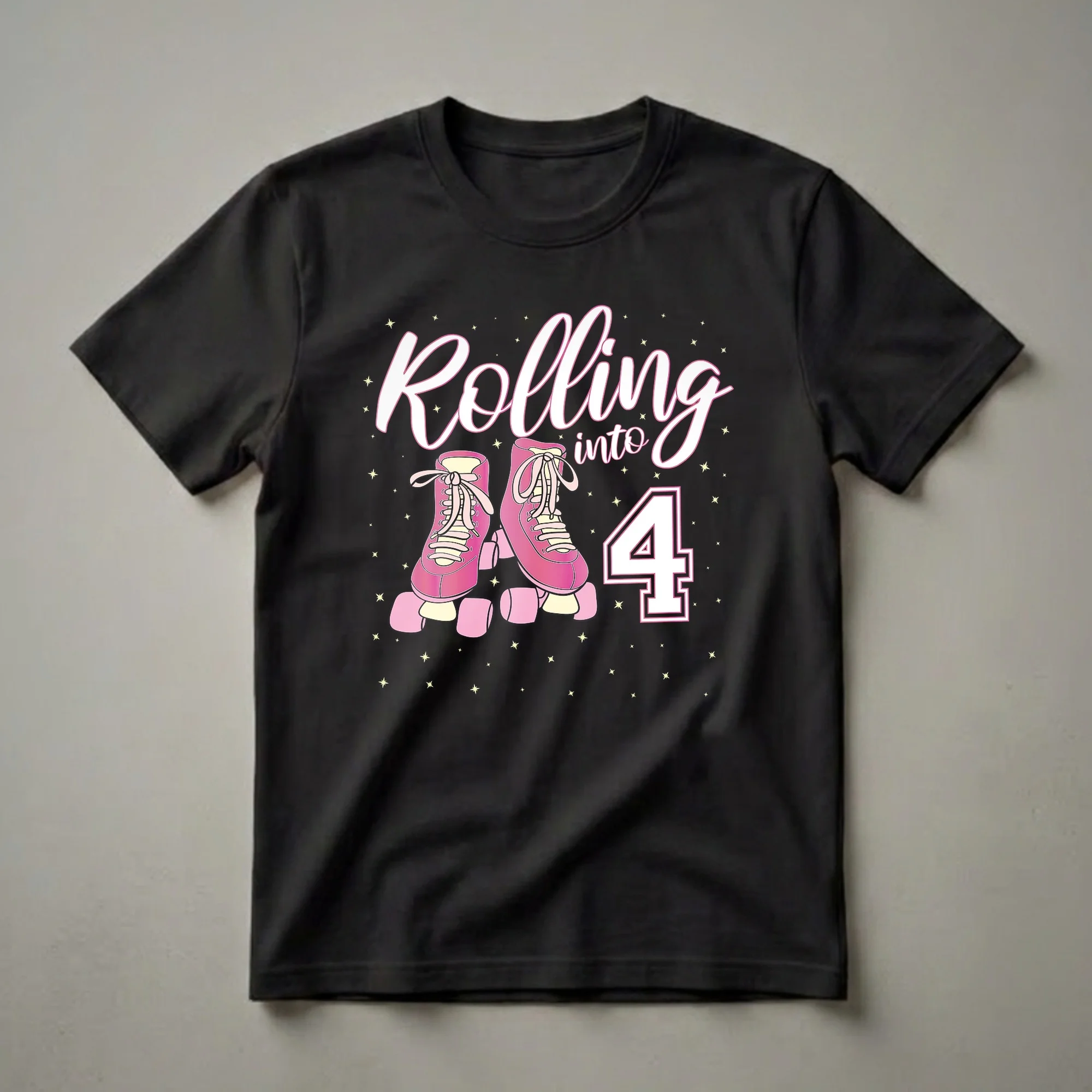 Hover to zoom · tap to expand Rolling Into 4 Years Old Girl Roller Skate Birthday T-Shirt