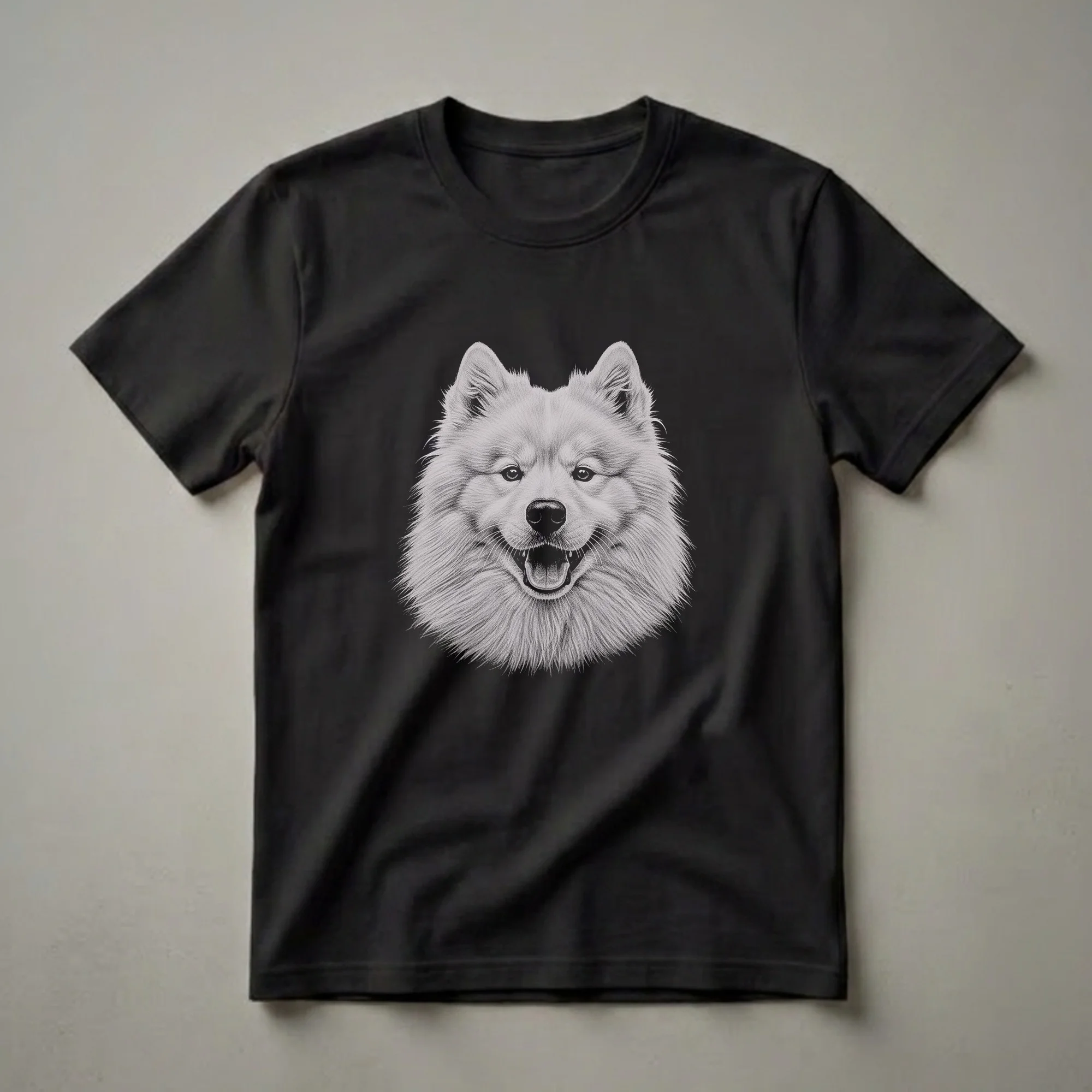 Dog lovers with a soft spot for the fluffy, smiling Samoyed breed will adore this artistic sketch t-shirt. This striking graphic tee features a detailed pencil sketch of a Samoyed's face, capturing the breed's characteristic fluffy white coat and friendly expression. The art style evokes a vintage wildlife illustration, a thoughtful choice for anyone who appreciates the beauty of this working dog breed. Samoyeds originated in Siberia, where they were bred by the Samoyedic people to herd reindeer, pull sleds, and act as companions. Their thick double coat, designed to withstand harsh Arctic conditions, is beautifully rendered in this sketch. This t-shirt works well for dog moms, dog dads, or anyone who cherishes their canine companion. It makes a thoughtful gift for a birthday or holiday, especially for those who admire the distinctive look of the Samoyed. Wear this shirt to your next dog park visit or casual outing to share your passion for this beautiful breed.