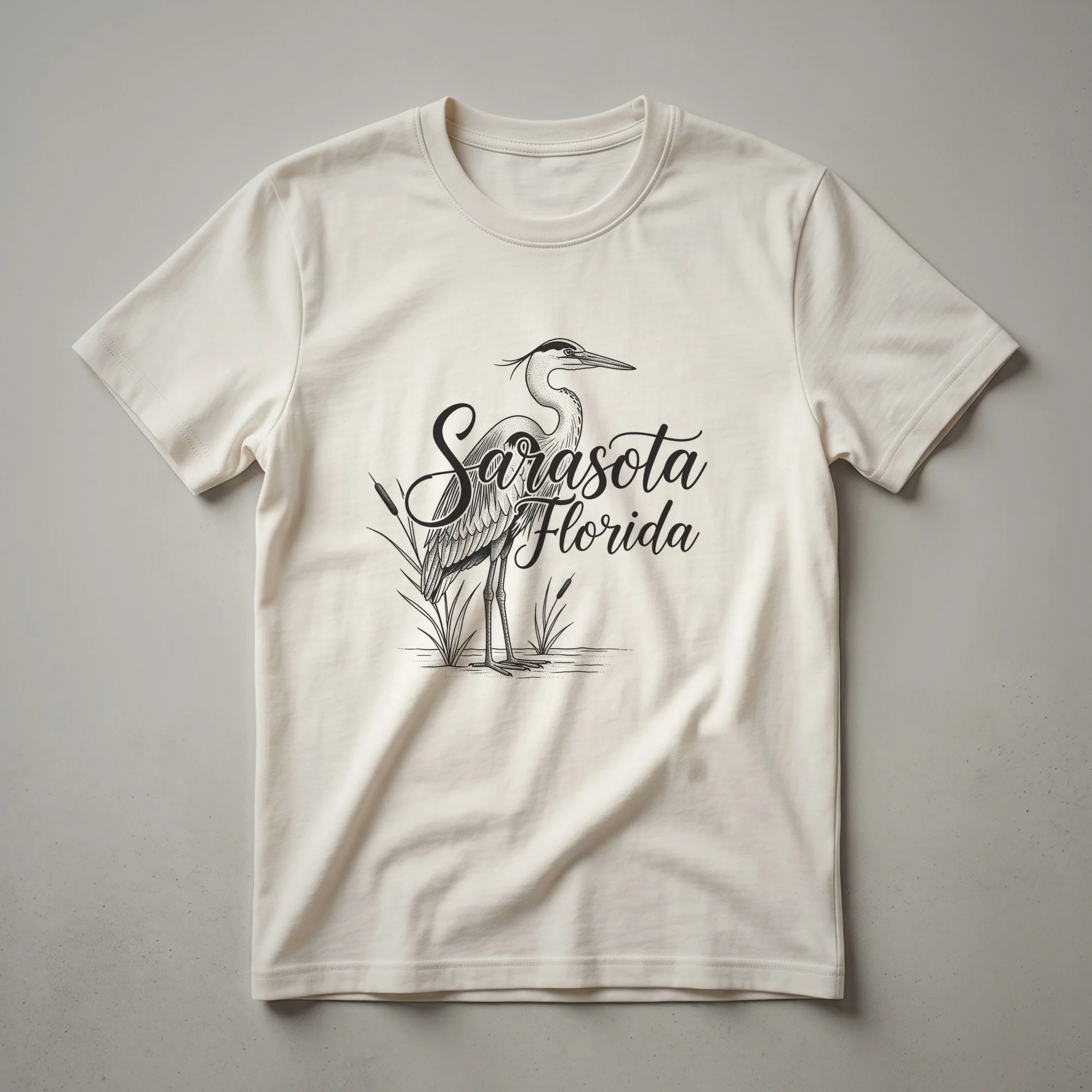 - Sarasota Florida heron sketch tee for coastal wildlife admirers.