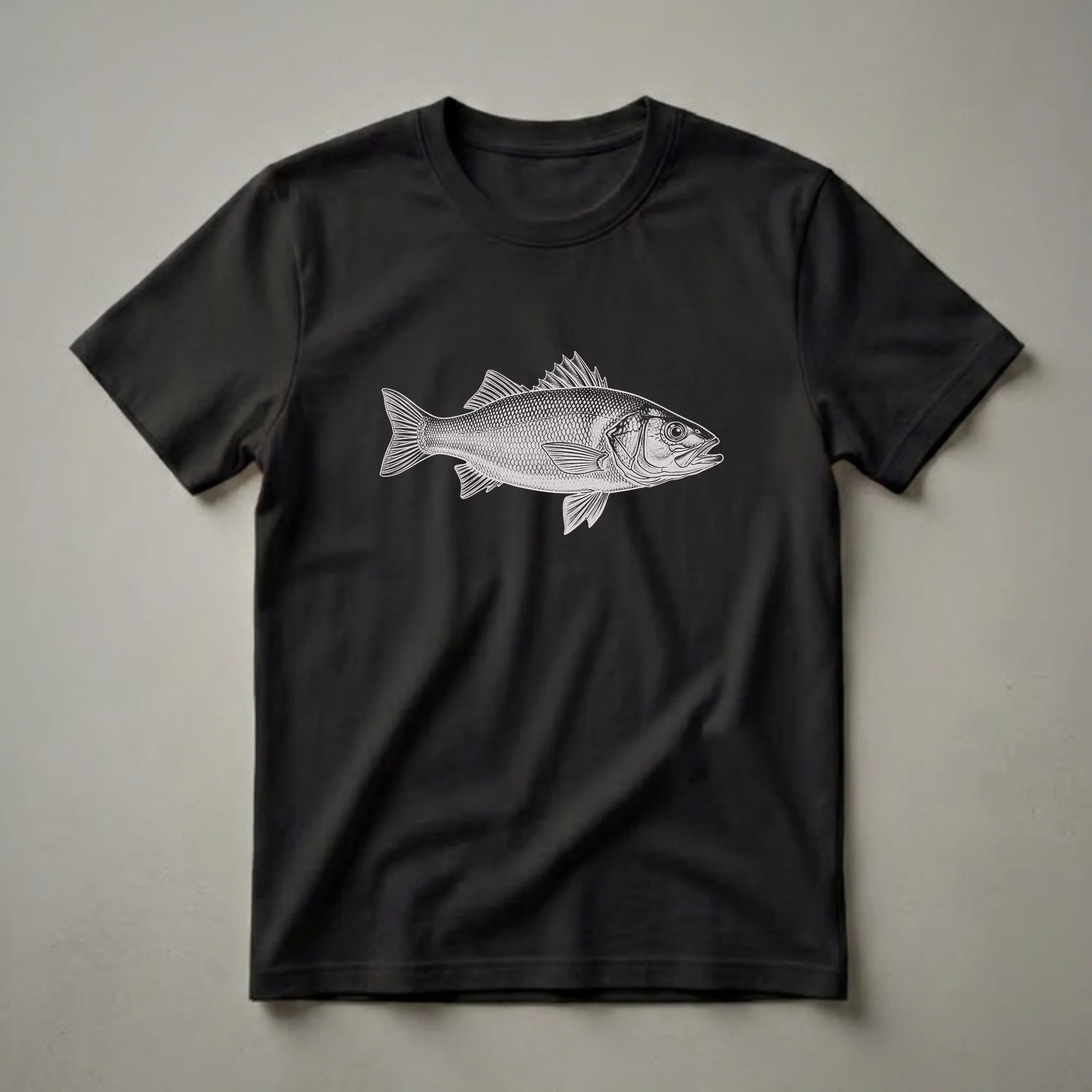 Anglers who appreciate the art of fishing will reach for this sea bass t-shirt. The design features a striking, detailed line drawing of a sea bass, rendered in a classic vintage style that evokes the golden age of sport fishing. This graphic tee is a testament to the beauty and power of this popular game fish. Sea bass are known for their aggressive strikes and are found in various marine environments worldwide, making them a sought-after catch for fishermen. This shirt is a thoughtful gift for the fisherman in your life, whether they enjoy freshwater or saltwater angling. It’s a staple in the collection for anyone who spends their weekends by the water, casting a line. Wear this tee on your next fishing trip, to a casual outing with friends, or simply as a way to express your passion for the sport. This t-shirt celebrates the connection between anglers and the aquatic world they explore.