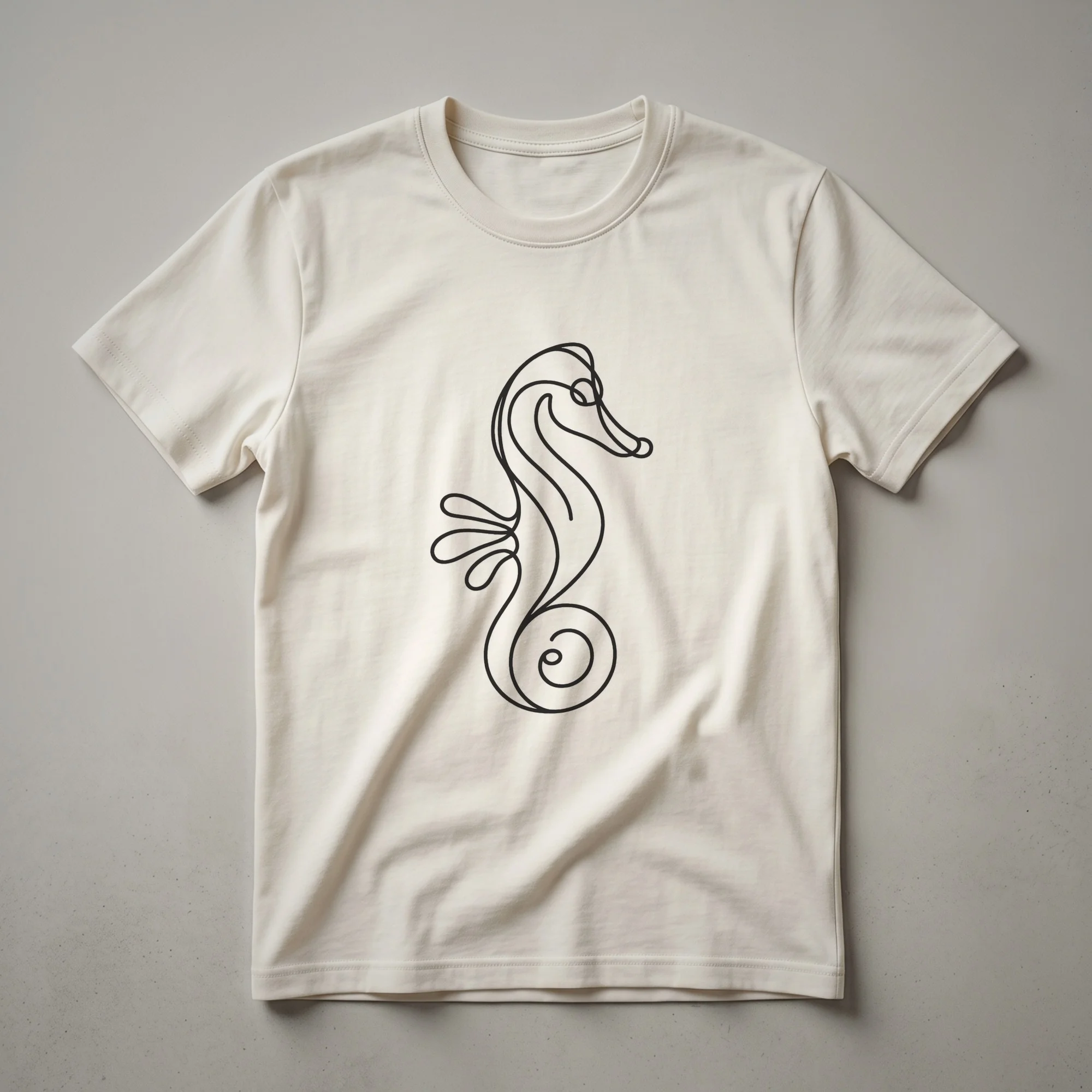 - A minimalist seahorse line art t-shirt for ocean lovers.