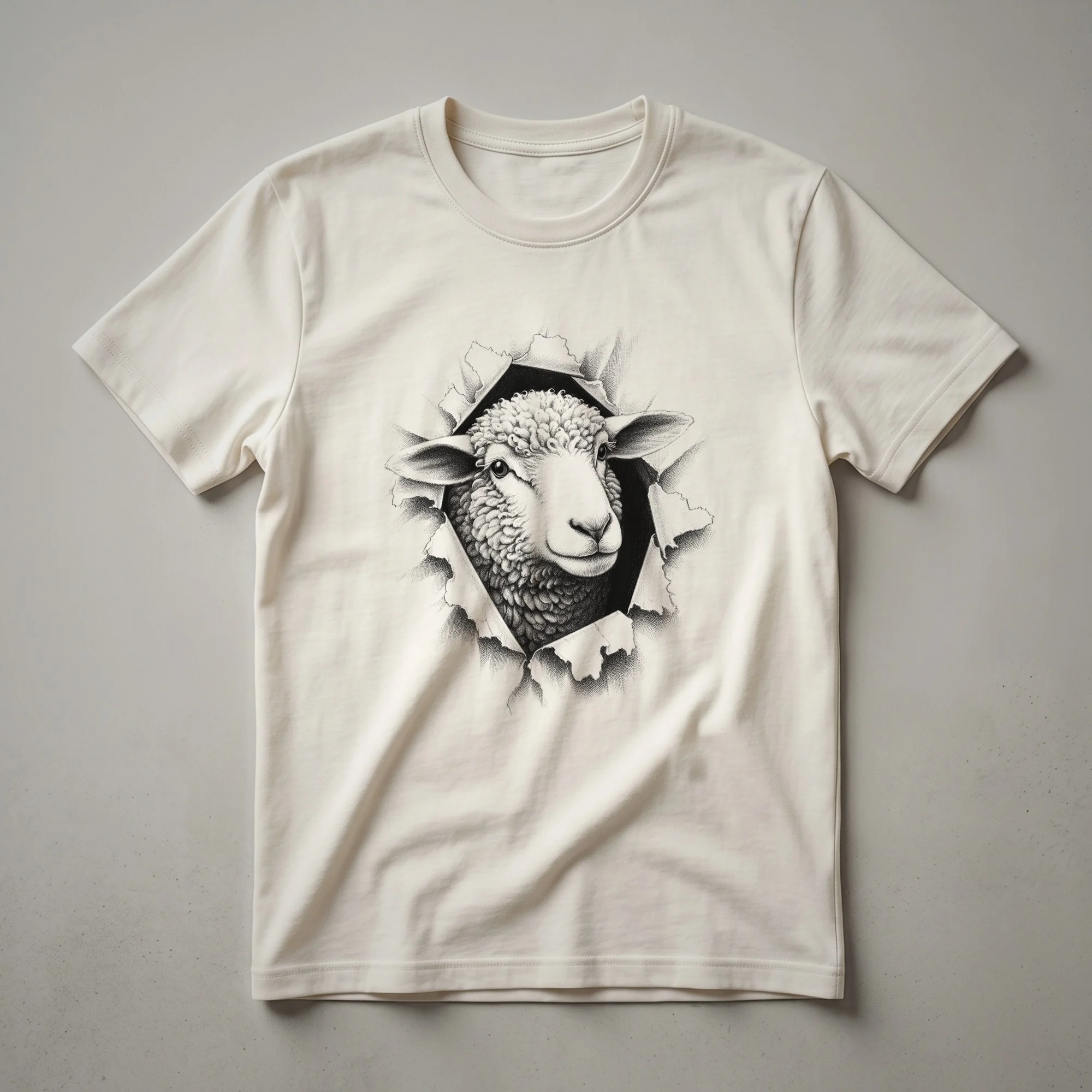 - A charming sheep peeking graphic tee for men and women who love farm animals.