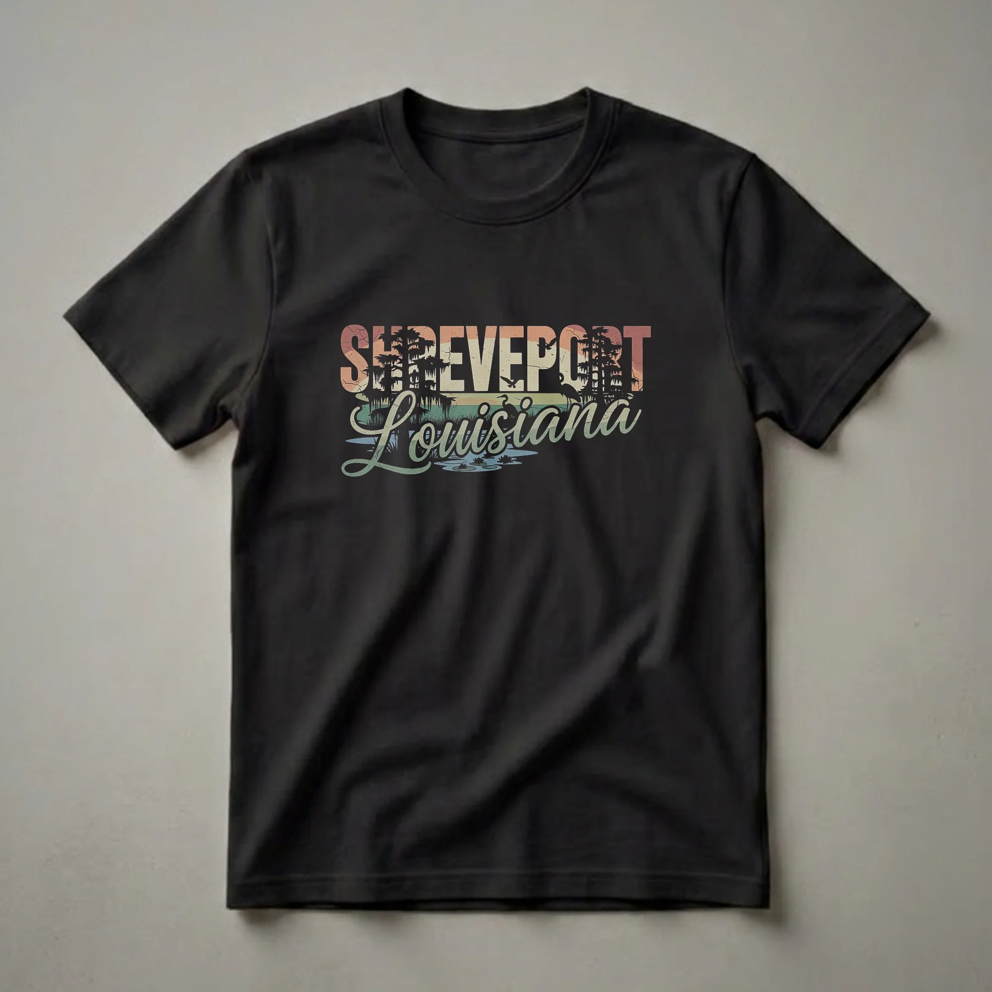 - A stylish tee for Shreveport natives who love a touch of swampy retro charm.