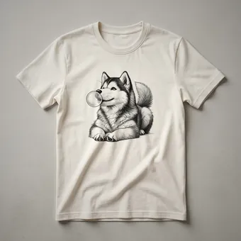 - Features a unique graphic of a Siberian Husky dog blowing bubble gum.