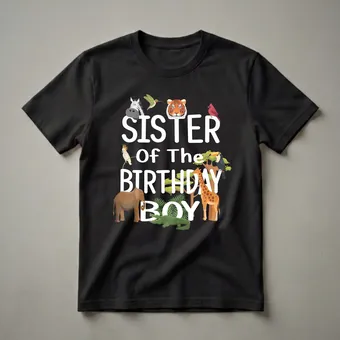- Sister of the Birthday Boy t-shirt for animal-themed parties.