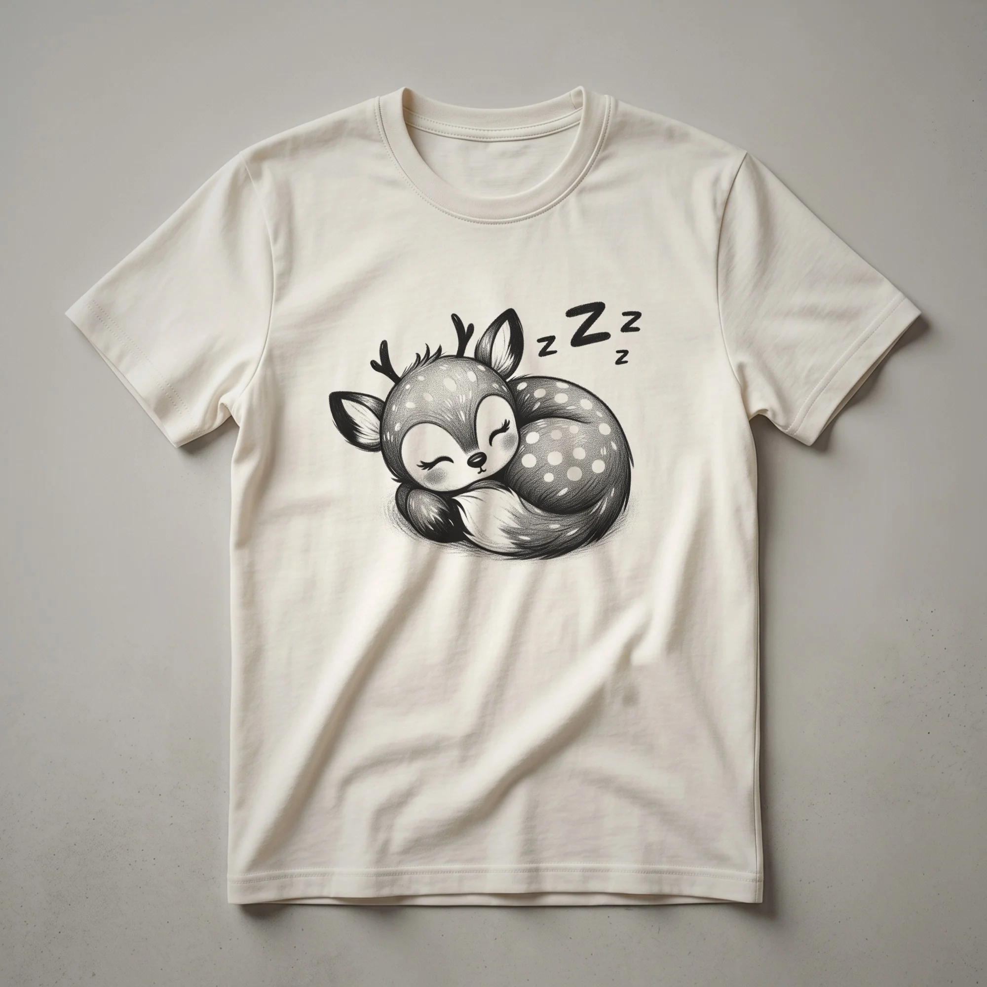 - A sweet sleeping fawn graphic tee for children who love woodland animals.