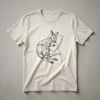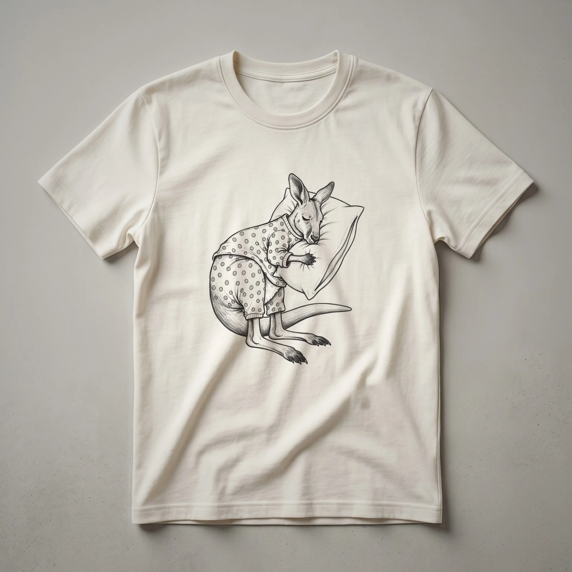 Kangaroo owners and fans of sleepy animals will reach for this unique graphic tee. The design showcases a charming, hand-drawn illustration of a kangaroo comfortably asleep, complete with pajamas. Kangaroos, native to Australia, are known for their powerful hind legs and their ability to hop at impressive speeds, but this particular marsupial is clearly focused on rest. This t-shirt captures the universal desire for a good night's sleep, making it a relatable piece for anyone who loves animals or enjoys a cozy nap. It's a playful statement piece that sparks conversation and brings a smile. This comfortable shirt is a thoughtful gift for friends or family members who appreciate quirky animal art and a good sense of humor. Wear it to casual outings, game nights, or simply when you want to express your love for all things sleepy and Australian. This tee is a staple in the collection for those who understand the art of relaxation.