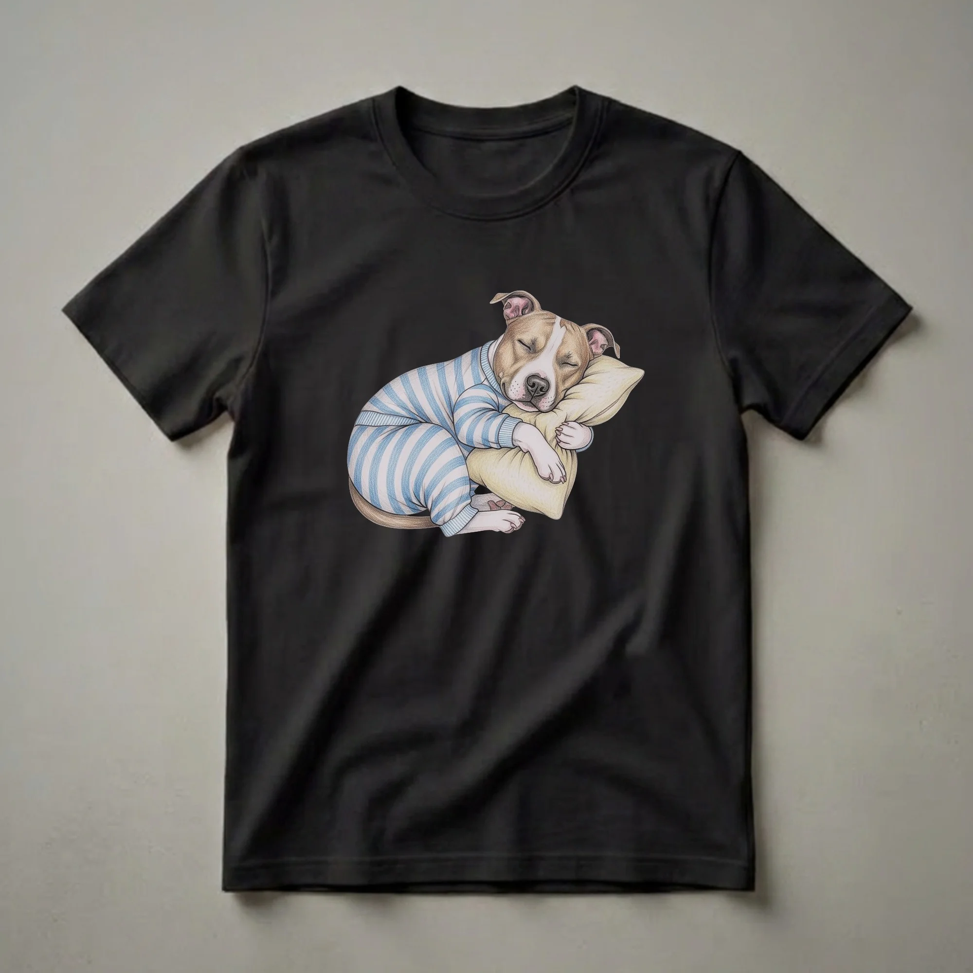 Hover to zoom · tap to expand Sleeping Pitbull Dog in Pajamas Graphic T-Shirt for Dog Lovers