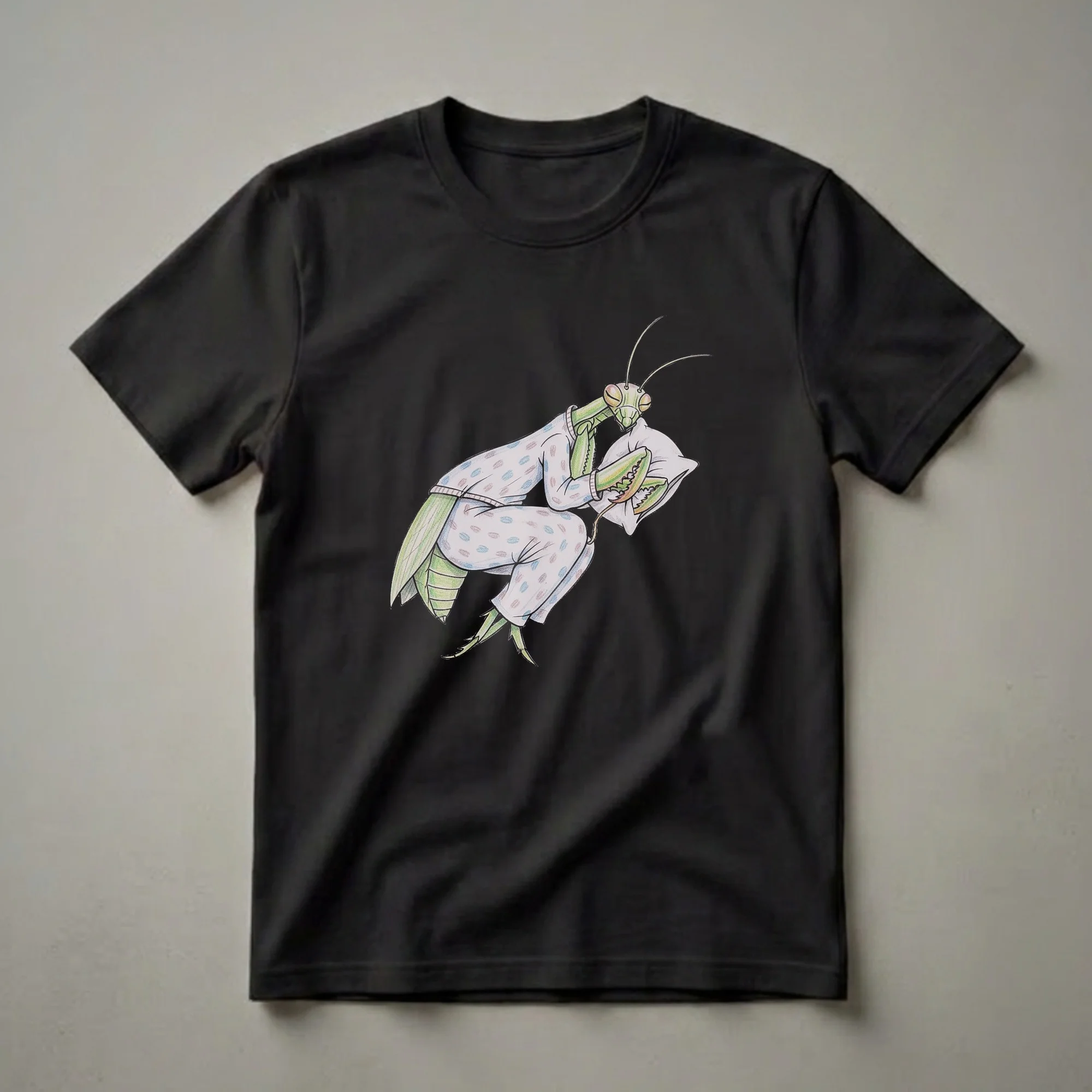 Hover to zoom · tap to expand Sleeping Praying Mantis Pajama Graphic T-Shirt for Insect Lovers