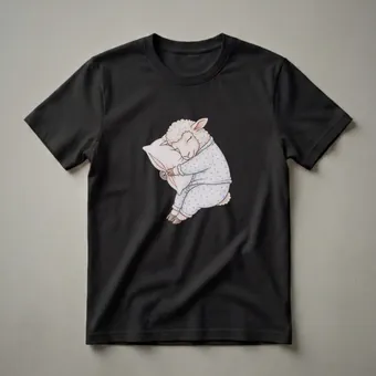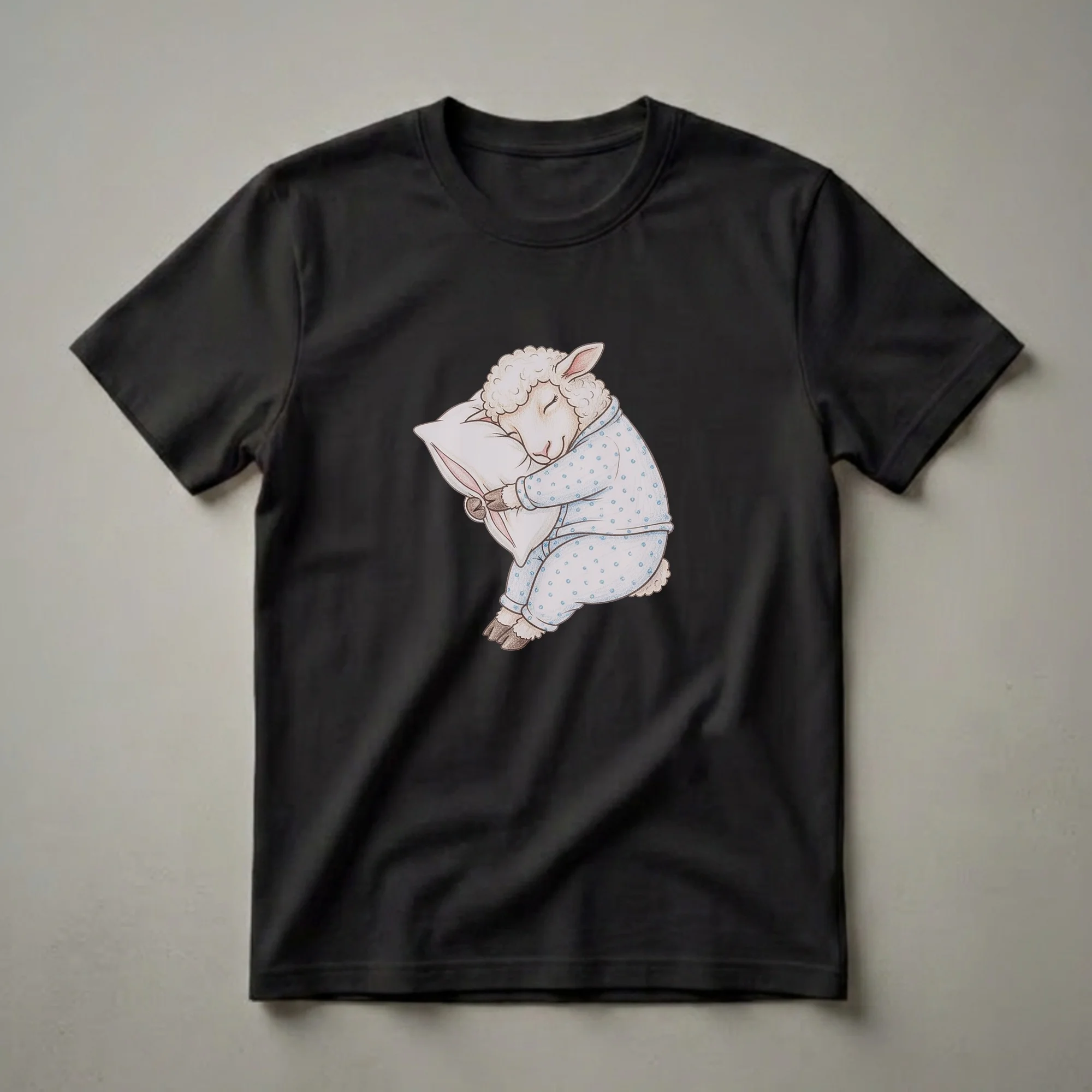 Celebrate your love for slumber with this adorable, hand-drawn graphic tee featuring a sheep snoozing soundly in its polka-dot pajamas. This charming graphic tee captures that sleepy essence with a delightful illustration of a sheep nestled on a pillow, all cozy in blue polka-dot pajamas. The art style, reminiscent of colored pencil drawings, gives this t-shirt a soft, whimsical feel. It's a perfect way for anyone who loves animals, especially sheep, to express their appreciation for a good night's sleep. This shirt is a thoughtful gift for friends or family members who are always looking forward to bedtime, or perhaps for someone who works night shifts and dreams of daytime slumber. Imagine wearing this to a casual game night or a relaxed brunch with friends; it's sure to bring a smile. This tee is a go-to for anyone who identifies with the peaceful, sleepy vibe of a sheep drifting off to dreamland. It's more than just apparel; it's a statement of comfort and a love for all things cozy. The detailed drawing showcases the sheep's fluffy wool and the soft folds of its pajamas, making it an eye-catching design for any casual occasion.