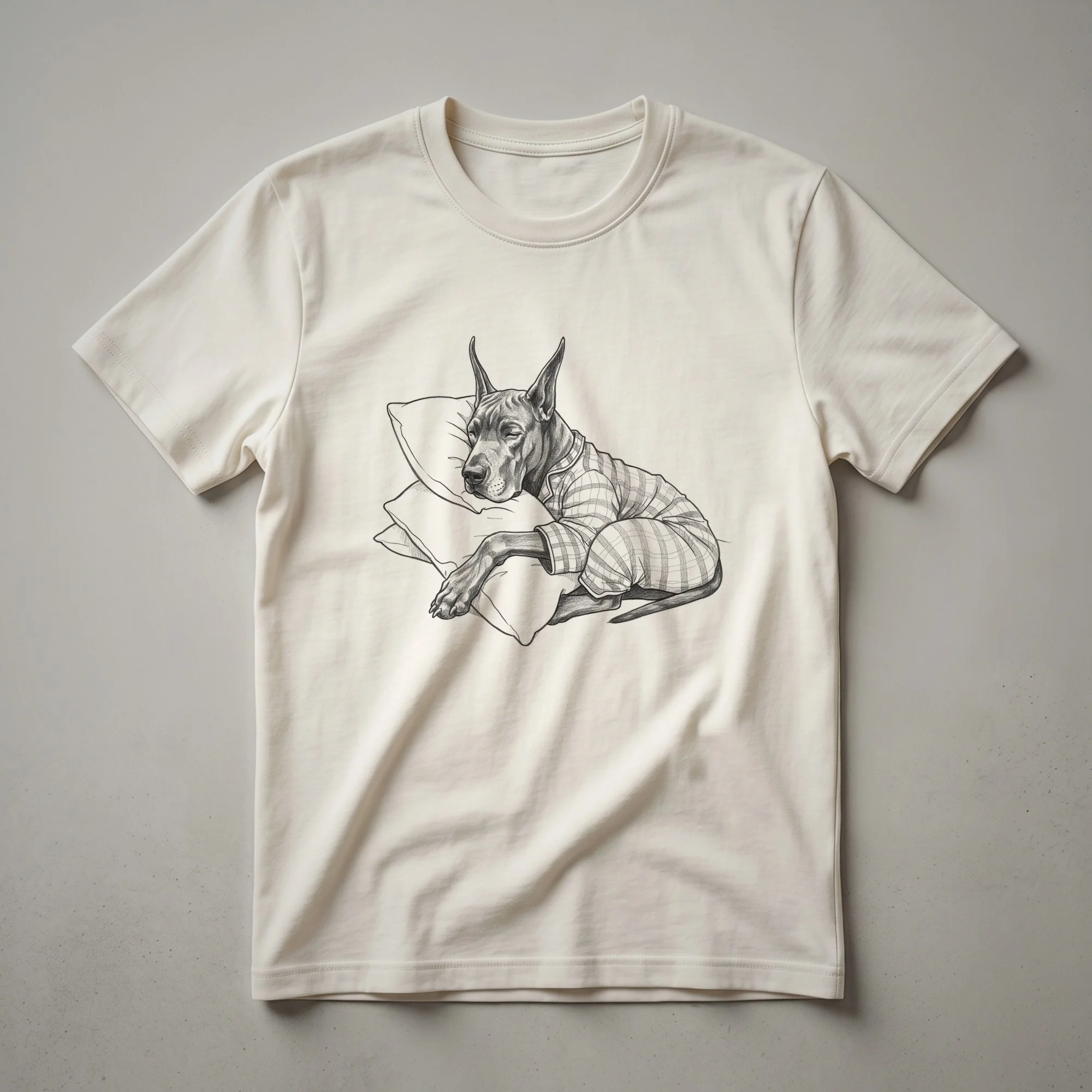 Great Dane owners who appreciate the gentle giants of the canine world will reach for this unique pajama-clad dog tee. The design features a striking black and white line drawing of a Great Dane, depicted in a relaxed, sleepy pose while wearing pajamas. This artistic representation captures the calm and endearing nature of the breed, making it a standout piece for any dog enthusiast. Great Danes, known for their impressive size and sweet disposition, are often referred to as "gentle giants." This shirt is a thoughtful gift for the Great Dane mom or dad who cherishes their large, loving companion. Imagine wearing this comfortable t-shirt while enjoying a quiet morning at home or during a casual outing with fellow dog lovers. It’s a conversation starter and a clear declaration of affection for this magnificent breed. This graphic tee is more than just apparel; it's a wearable tribute to the loyal and affectionate Great Dane, embodying the comfort and joy they bring into our lives. It's a staple in the collection for anyone who understands the special bond shared with these majestic dogs.
