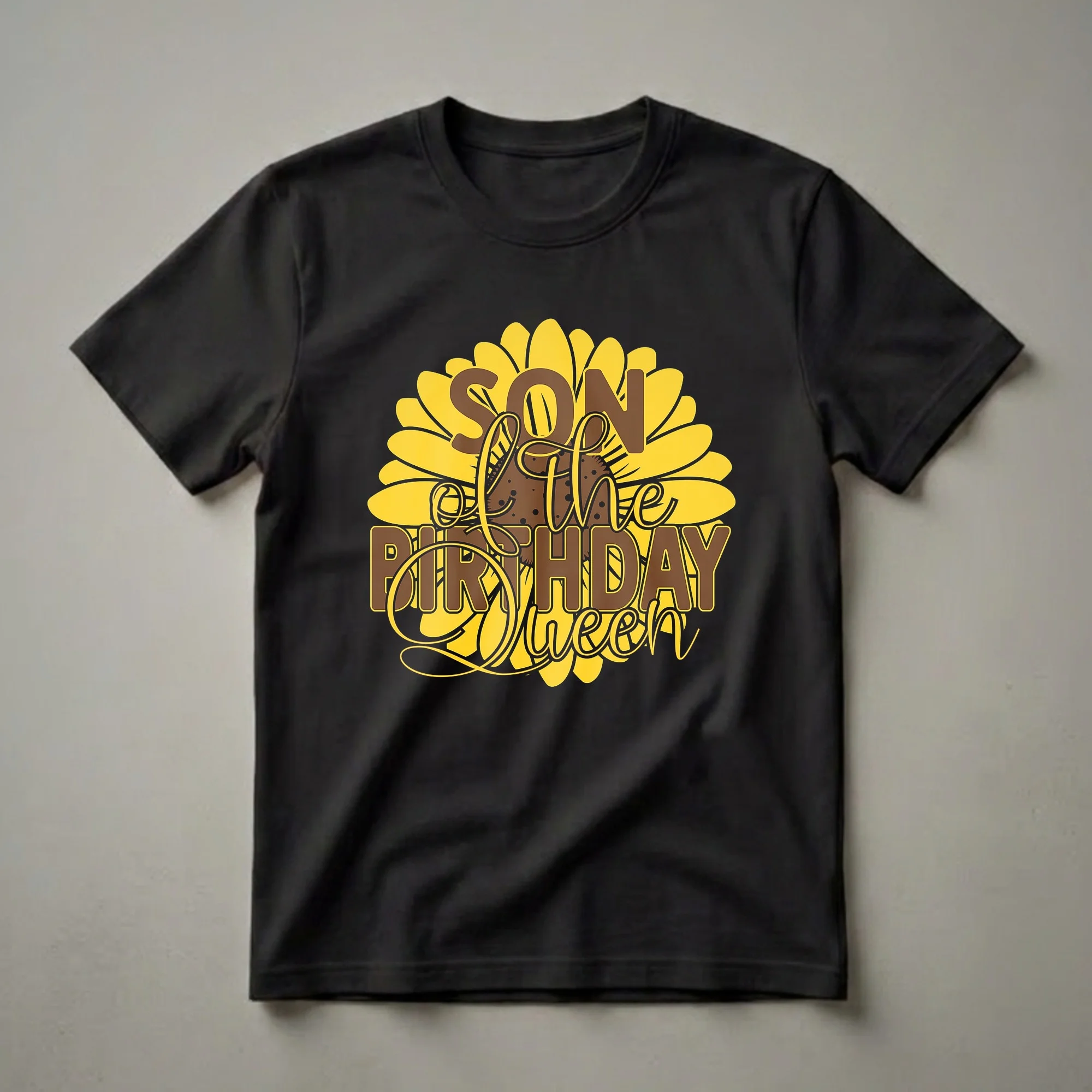 - This "Son of the Birthday Queen" shirt features a bright sunflower, celebrating Mom's special day.