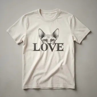 Sphynx cat enthusiasts will appreciate this eye-catching graphic tee featuring a stylized representation of the breed's unique face. The design incorporates a heart symbol, clearly communicating a deep affection for these distinctive felines. Sphynx cats, known for their hairless appearance and affectionate nature, are a beloved breed among many cat lovers. This t-shirt serves as a wonderful way for cat moms and cat dads to express their passion for their unique companions. It makes a thoughtful gift for anyone who cherishes their Sphynx cat, whether it's for a birthday, holiday, or just because. Wear this shirt to casual outings, cat-themed events, or simply while relaxing at home with your feline friend, showcasing your pride in owning or loving a Sphynx. This comfortable tee is a staple in the collection for devoted Sphynx admirers.