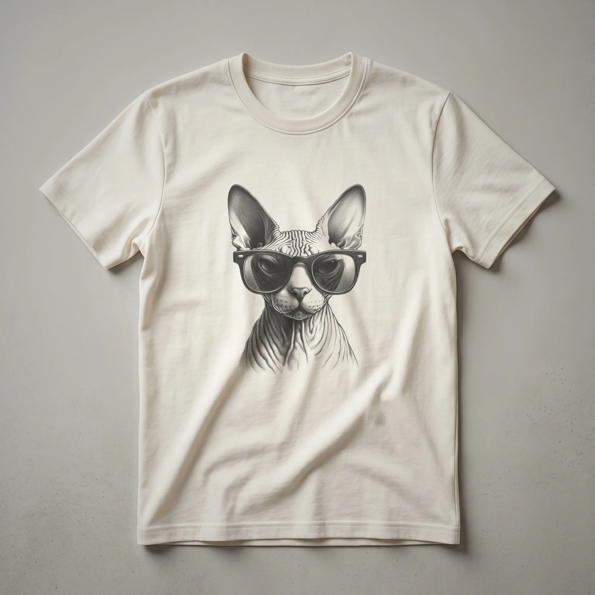 Sphynx cat owners know the breed's distinctive appearance and affectionate nature. This graphic tee captures that unique charm with a striking line art drawing of a Sphynx cat sporting cool sunglasses. The detailed linework creates an eye-catching visual that stands out, making this shirt a conversation starter. Sphynx cats, known for their lack of fur and wrinkled skin, are often described as dog-like in their loyalty and desire for attention. This t-shirt is a fantastic way for any devoted cat mom or cat dad to express their appreciation for this special breed. It makes a thoughtful gift for birthdays, holidays, or just because. Wear this unique cat shirt to casual outings, cat-themed events, or simply while relaxing at home with your own feline companion. This comfortable tee is a staple in the collection for any true Sphynx enthusiast.