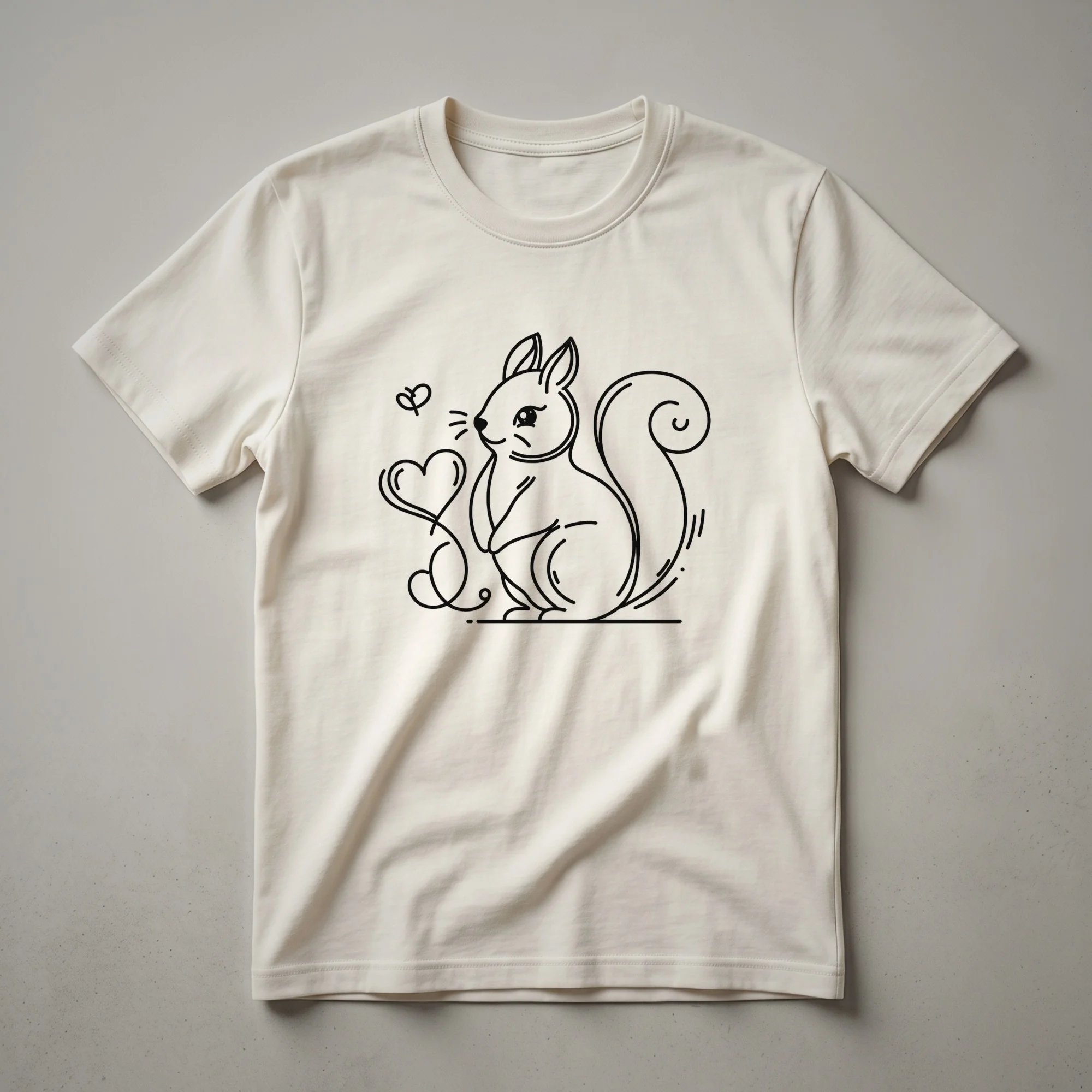 Squirrel enthusiasts who appreciate the charm of these agile woodland creatures will reach for this distinctive tee. The design features a minimalist line art illustration of a squirrel, rendered with clean, flowing lines that capture its playful essence. A subtle heart symbol is integrated into the artwork, signifying a deep affection for these common yet captivating animals. Squirrels, known for their energetic antics and their vital role in forest ecosystems, are often seen gathering nuts and scampering through trees. This graphic t-shirt serves as a wearable tribute to the natural world and the small wonders within it. It's a thoughtful gift for anyone who enjoys observing wildlife, hiking in forests, or simply has a soft spot for these busy rodents. This comfortable shirt is suitable for casual outings, nature walks, or simply relaxing at home while dreaming of the great outdoors. Embrace your connection to nature with this eye-catching squirrel shirt.