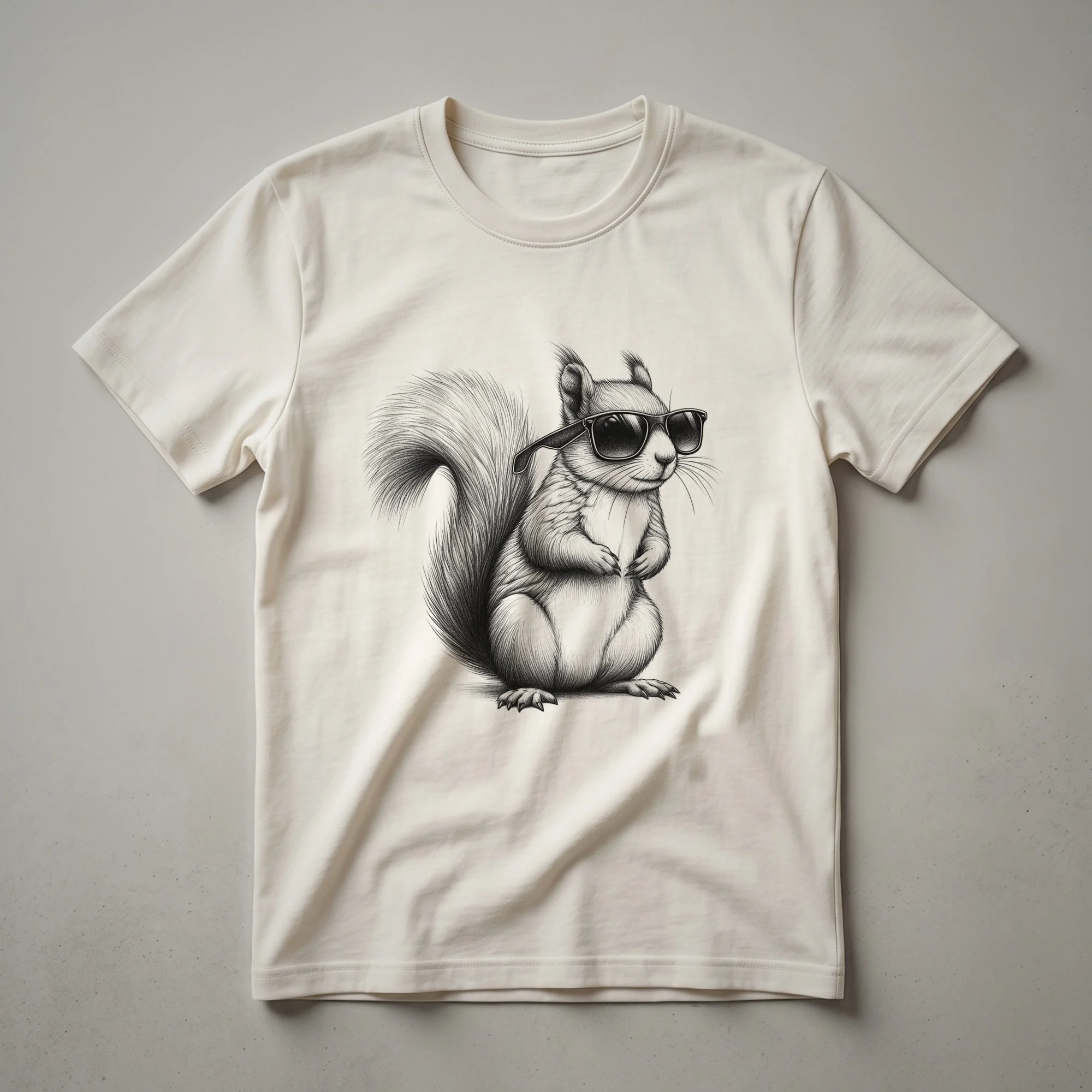 - Men's and boys' graphic tee featuring a cool squirrel sporting stylish sunglasses.