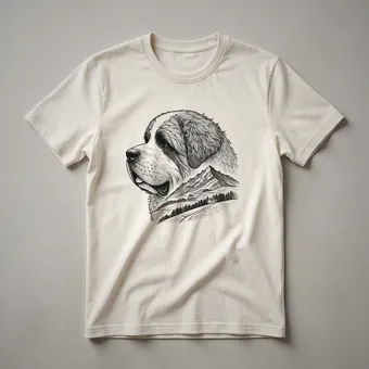 St. Bernard owners who cherish their gentle giants will appreciate this unique memorial t-shirt. The design showcases a beautifully rendered watercolor portrait of a St. Bernard's head, encircled by a delicate floral wreath. This artistic representation captures the breed's noble and kind nature, making it a touching tribute for anyone who has shared their life with one of these magnificent dogs. St. Bernards, originally bred in the Swiss Alps for rescue work, are known for their immense size, calm temperament, and incredible loyalty. This tee serves as a constant reminder of the special bond between a dog and its human family. It's a thoughtful gift for a dog mom or dog dad who wants to keep the memory of their furry companion close. This comfortable shirt is suitable for everyday wear, whether you're out for a walk, running errands, or simply relaxing at home with your canine friend. Celebrate the enduring love for your St. Bernard with this eye-catching graphic tee.