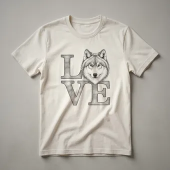 - Graphic t-shirt for men and women featuring a stylized wolf head with a heart.